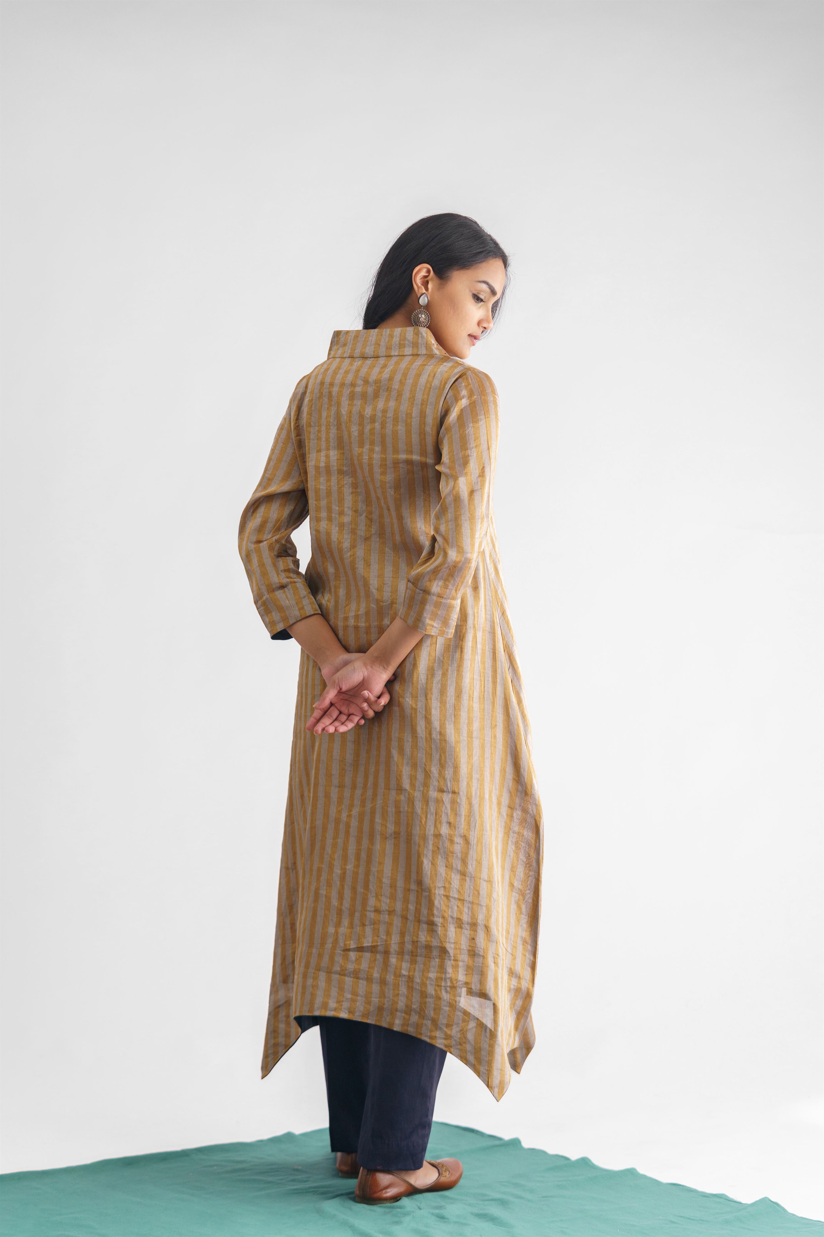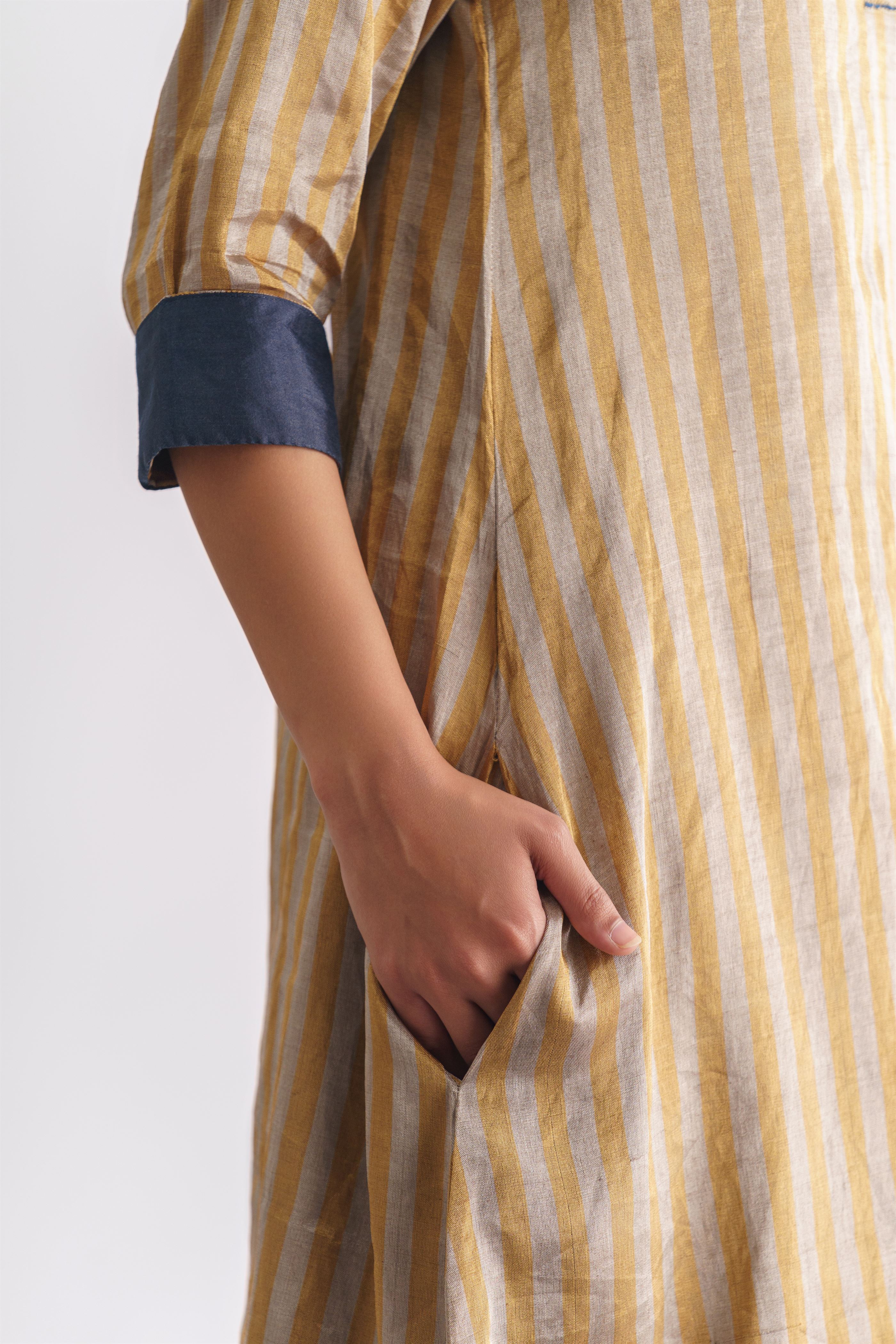 Fabric: Kurta- Handwoven stripe chanderi Silk ; Pant- Cotton silk