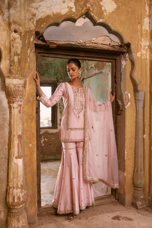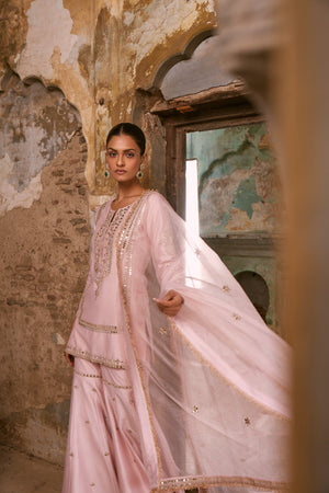 Fabric : Kurta- chanderi , sharara - chanderi, dupatta- organza