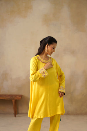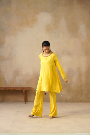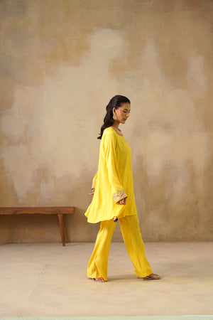 Noor Yellow Drape Top Set