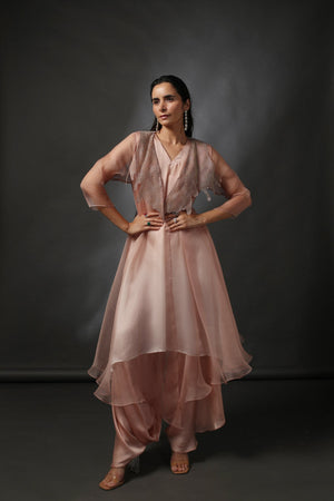 Nude Organza Shrug With Tunic And Pants