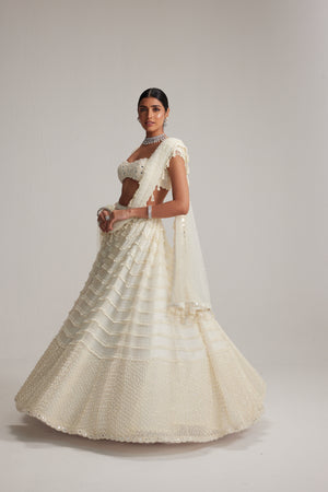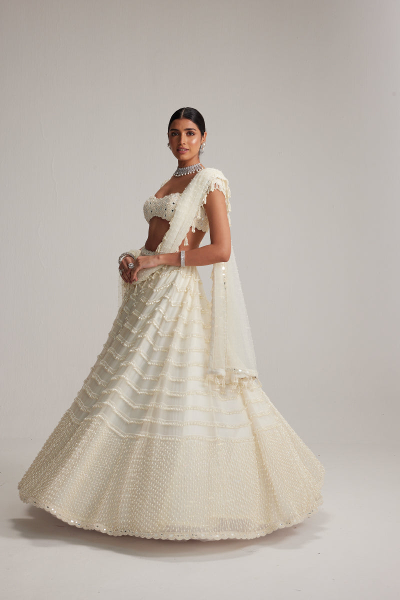 Off White Mirror and Pearl Drop Bridal lehenga set