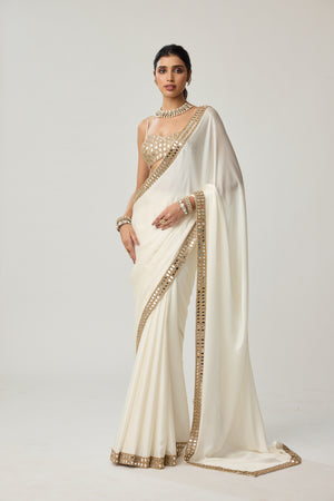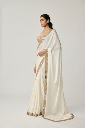 Off White Mirror Satin Saree Set