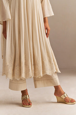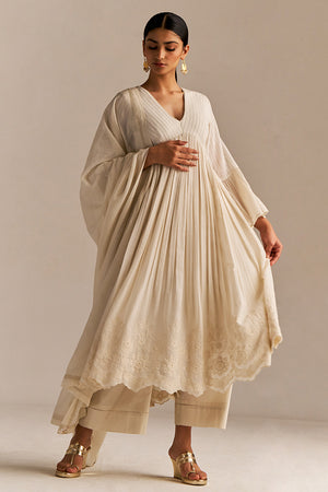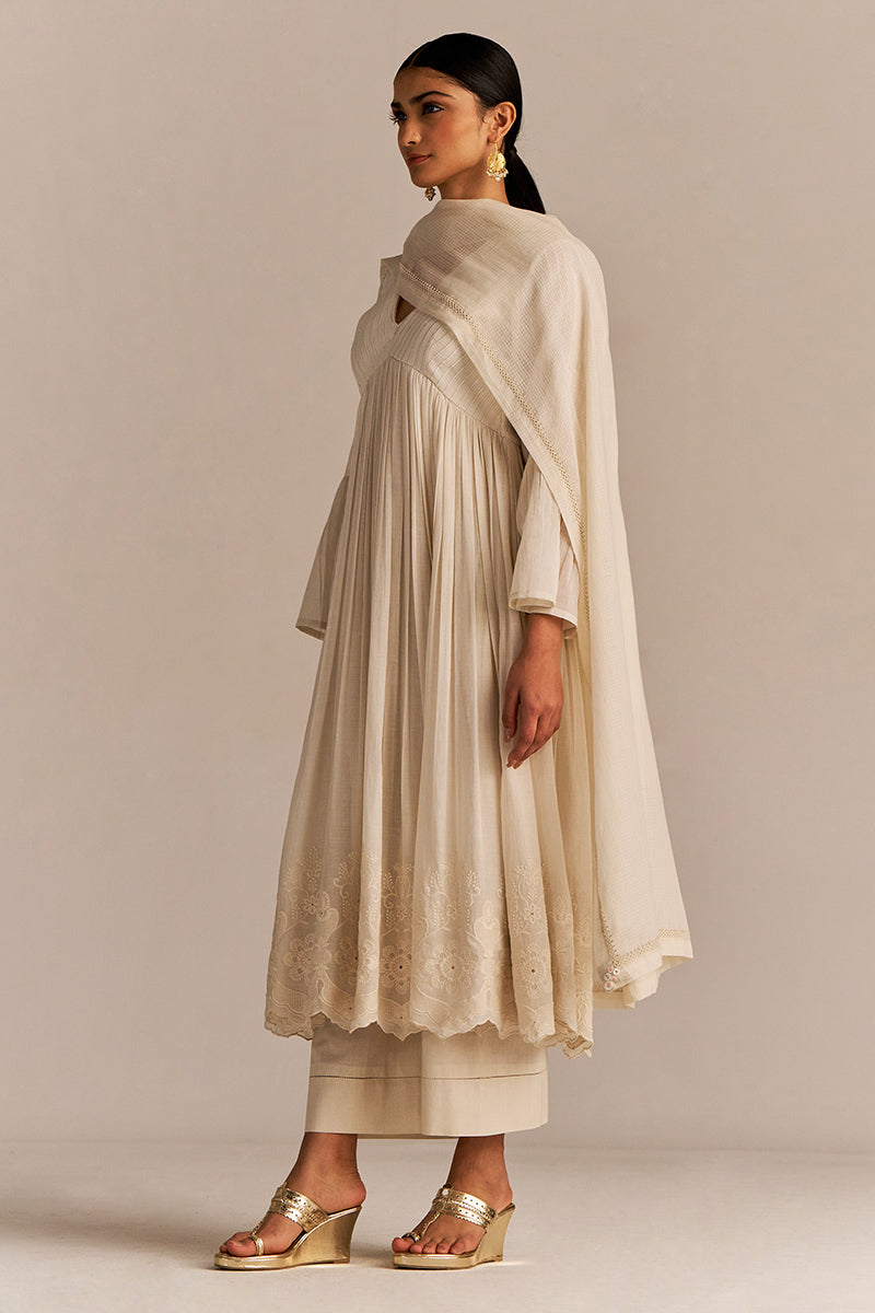 Off-White Mul-Mul Anarkali Kurta Set