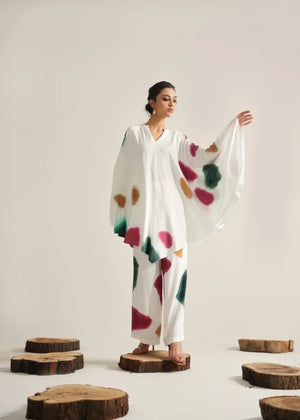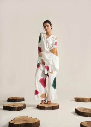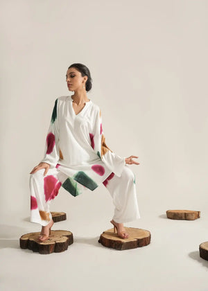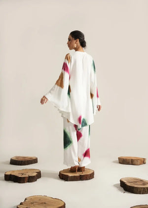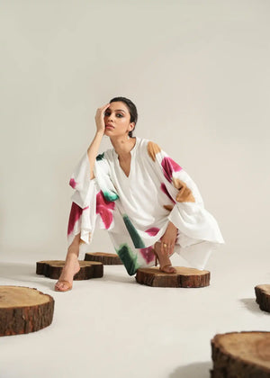 The Oishi Co-ord Set is a versatile addition to your summer wardrobe. Crafted in a pristine white hue, it exudes a fresh and breezy vibe, perfect for the sunny season. The flowy silhouette of the top and matching bottoms adds to the beauty of simplicity and elegance in this all-white outfit.
