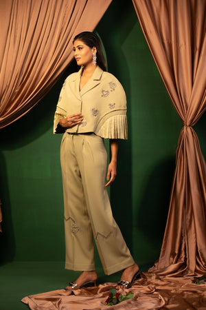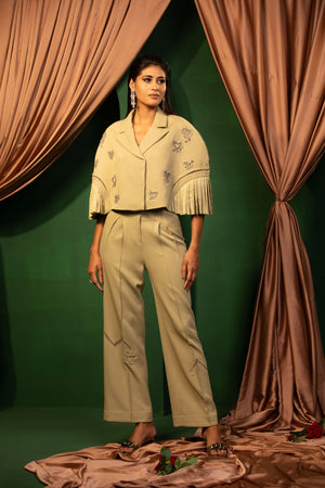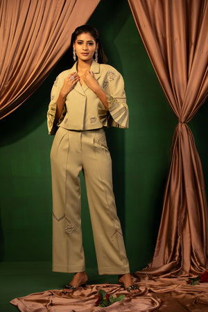 Step into an oasis of style with our Olive Oasis set. This outfit features a unique top with cut work paired with comfortable pants, making it perfect for both casual and semi-formal events. Fresh and stylish.