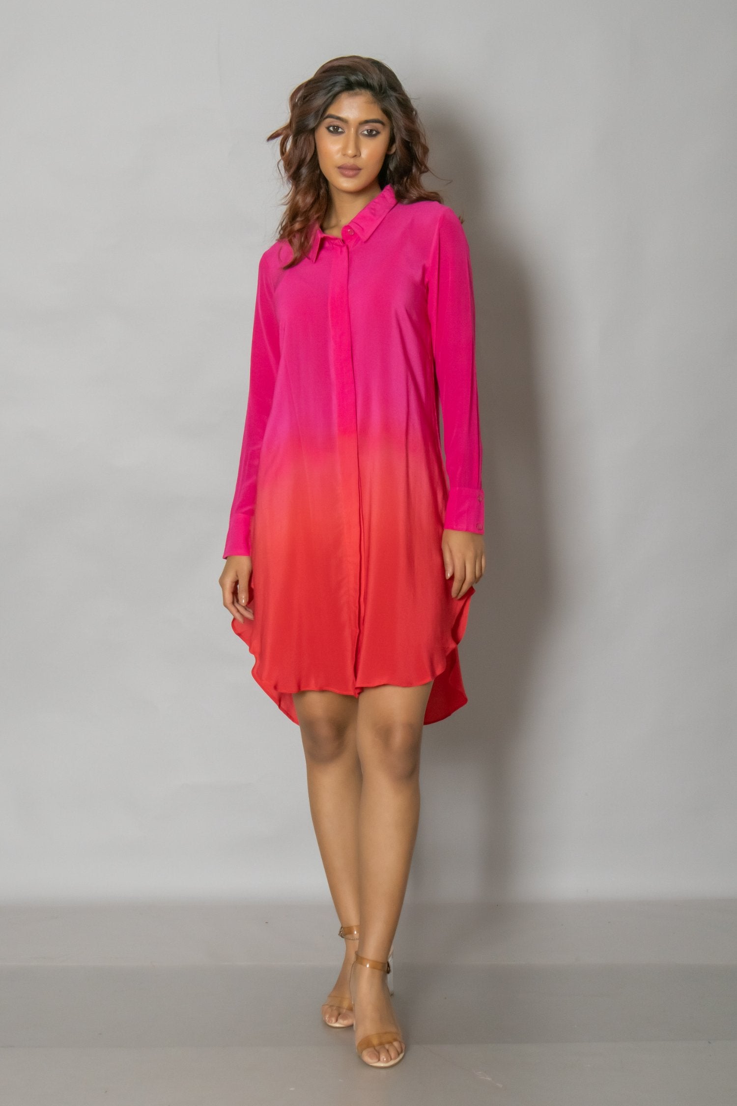 Collared ombre shirt dress in crepe