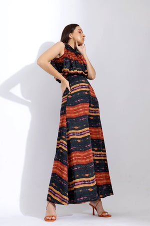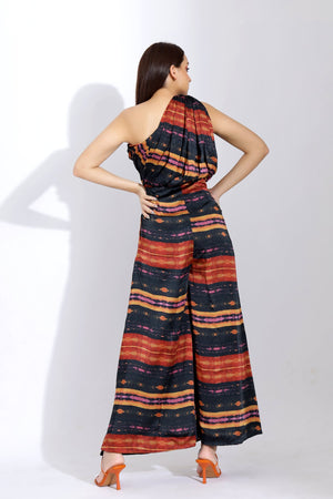 Featuring An Overall Digitally Printed Jumpsuit With A Draped One Shoulder Bodice And Wide Leg Pants