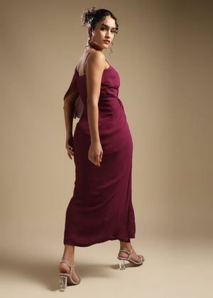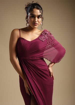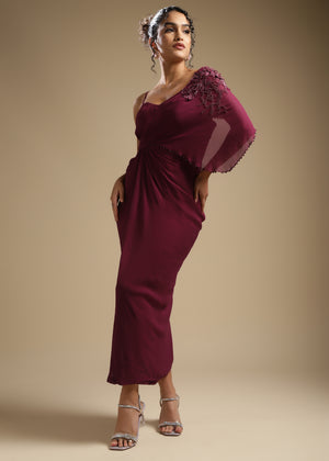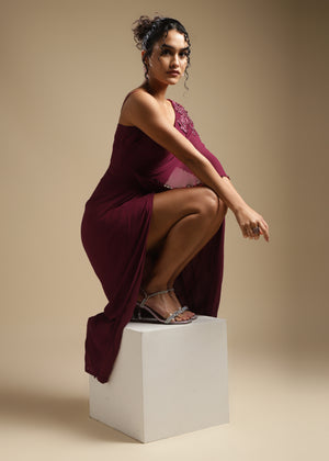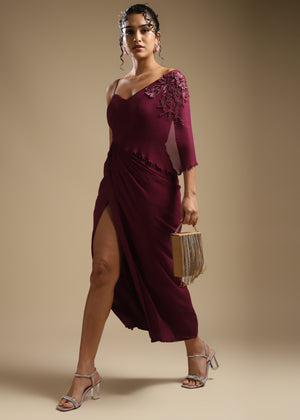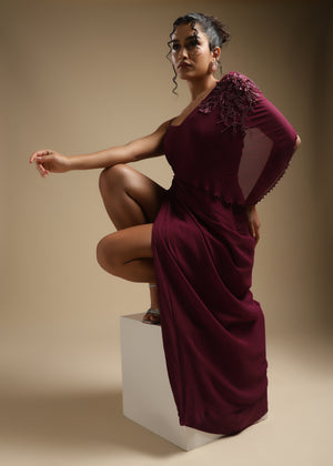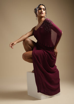 One-Shoulder Twisted Draped Dress With Embroidery Detailing And Crystal Hangings And A Side Zip Fastening.