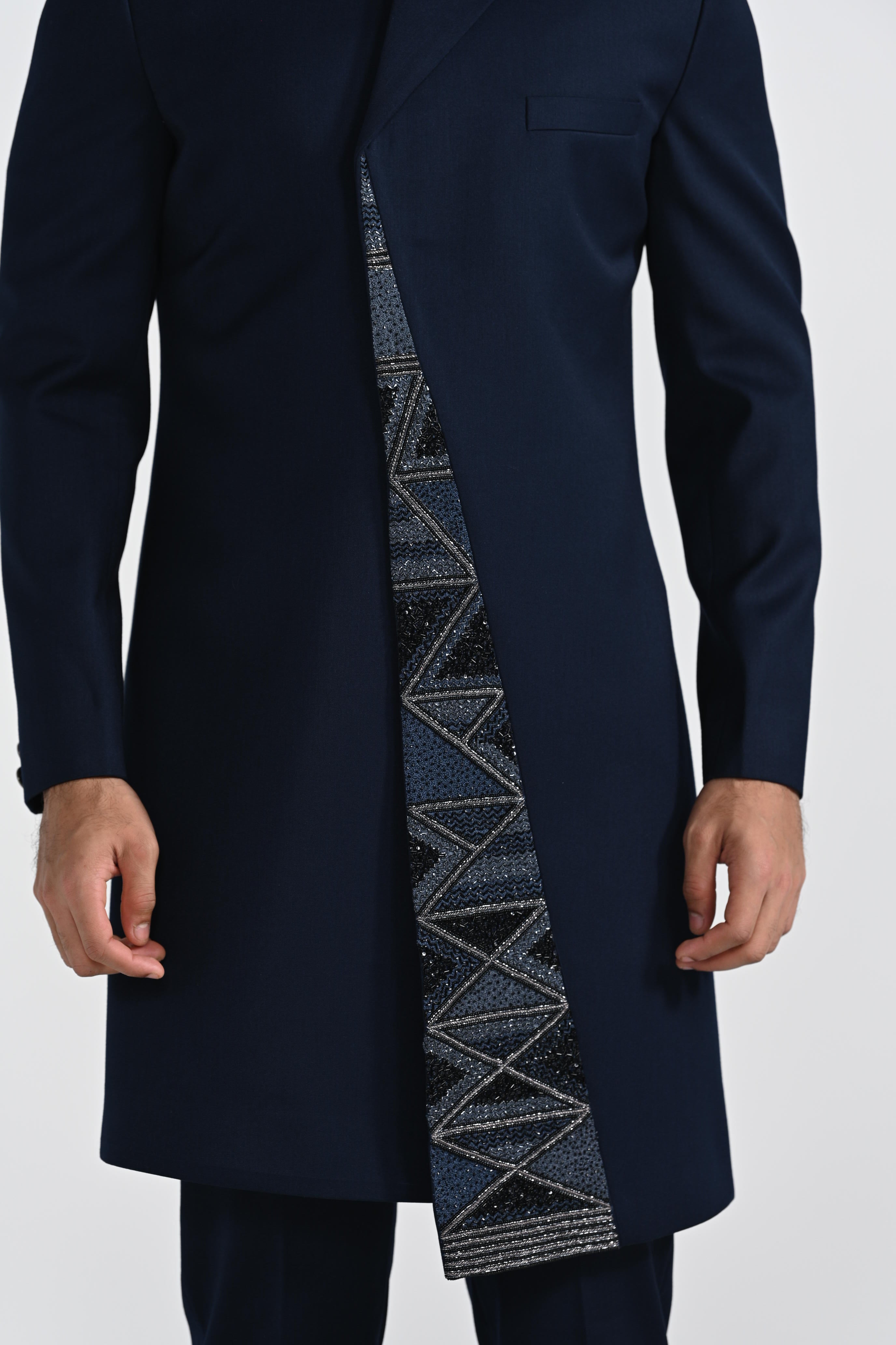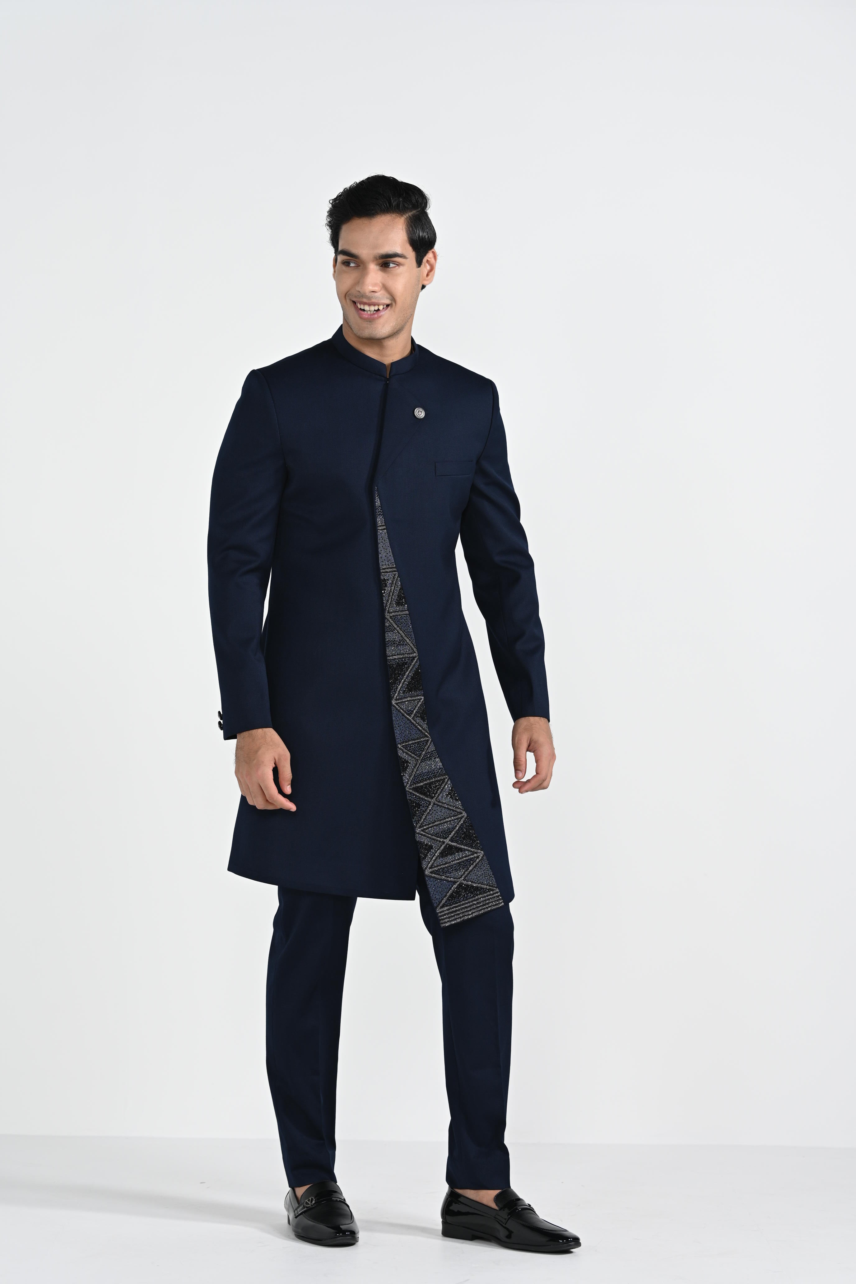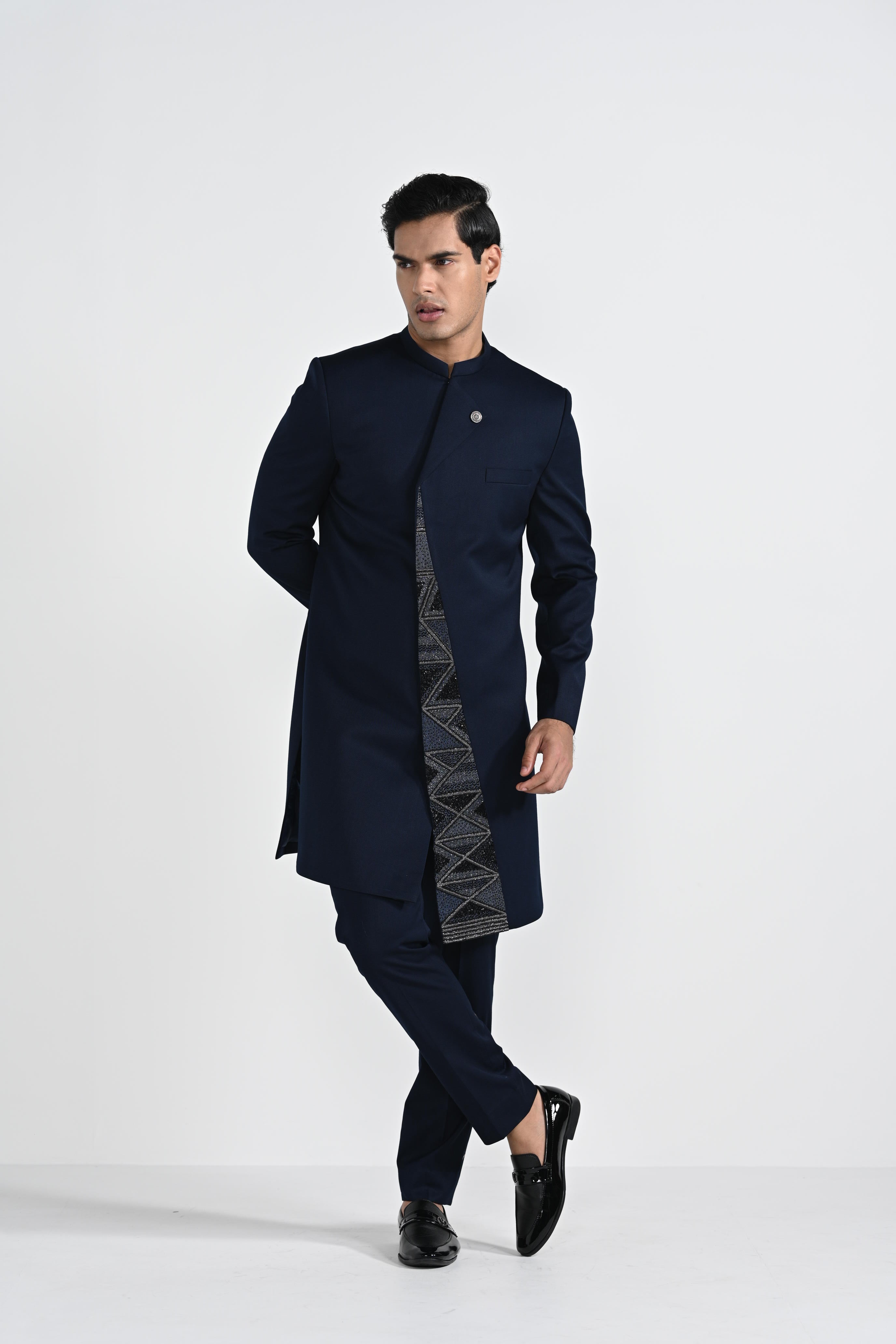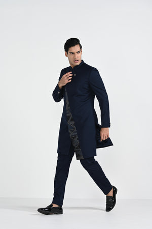 Onyx Blue Panel Achkan Set