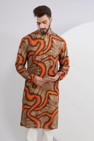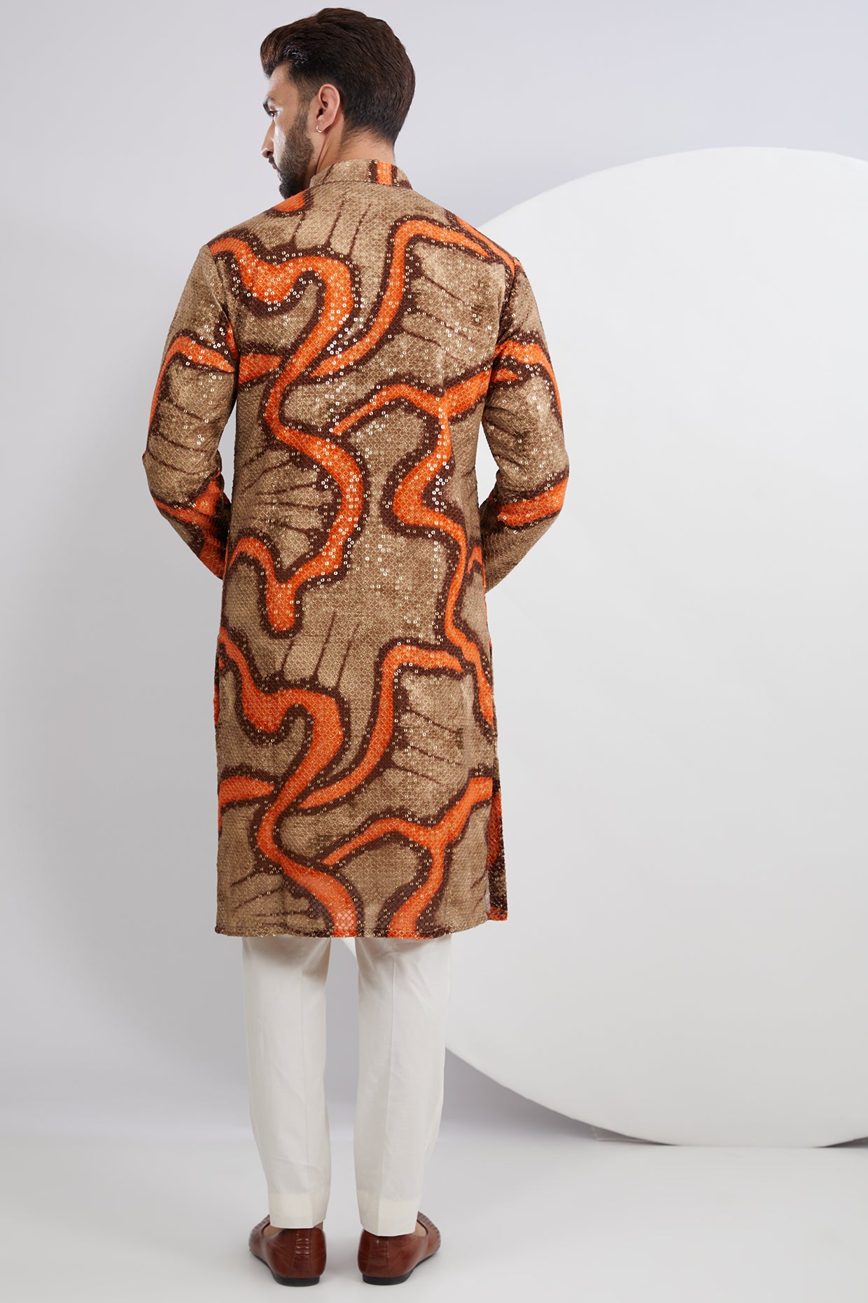 Orange and Green Abstract Kurta with Intricately Embroidered Artistry