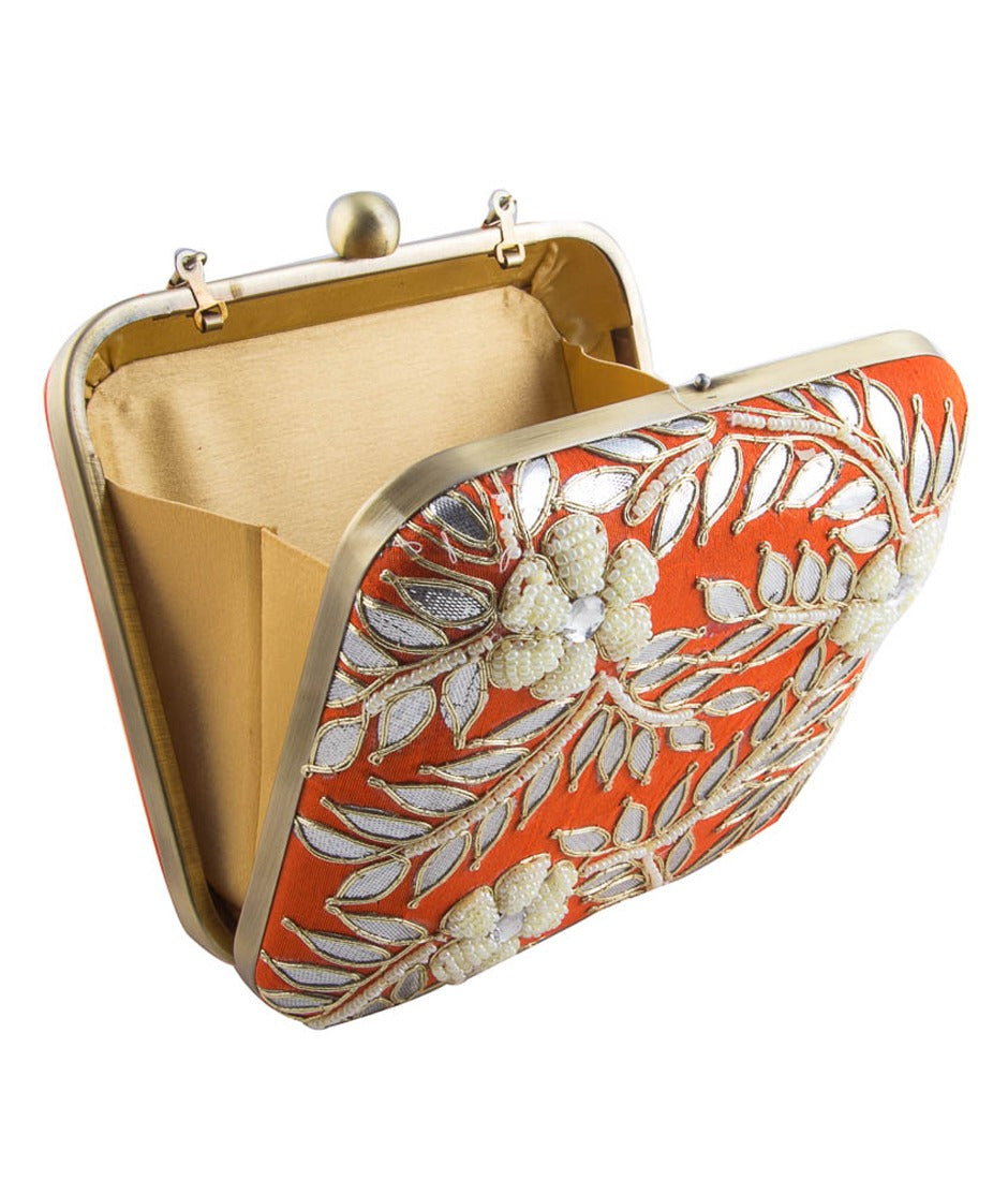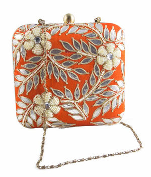 With scintillating design and hand embroidery this clutch bag comes with a detachable sling chain. Carry it with the chain or simply clutch it.