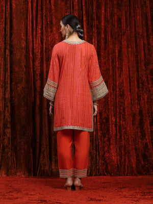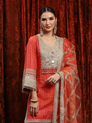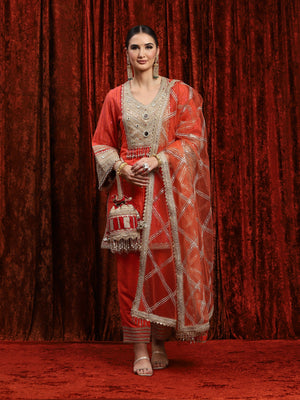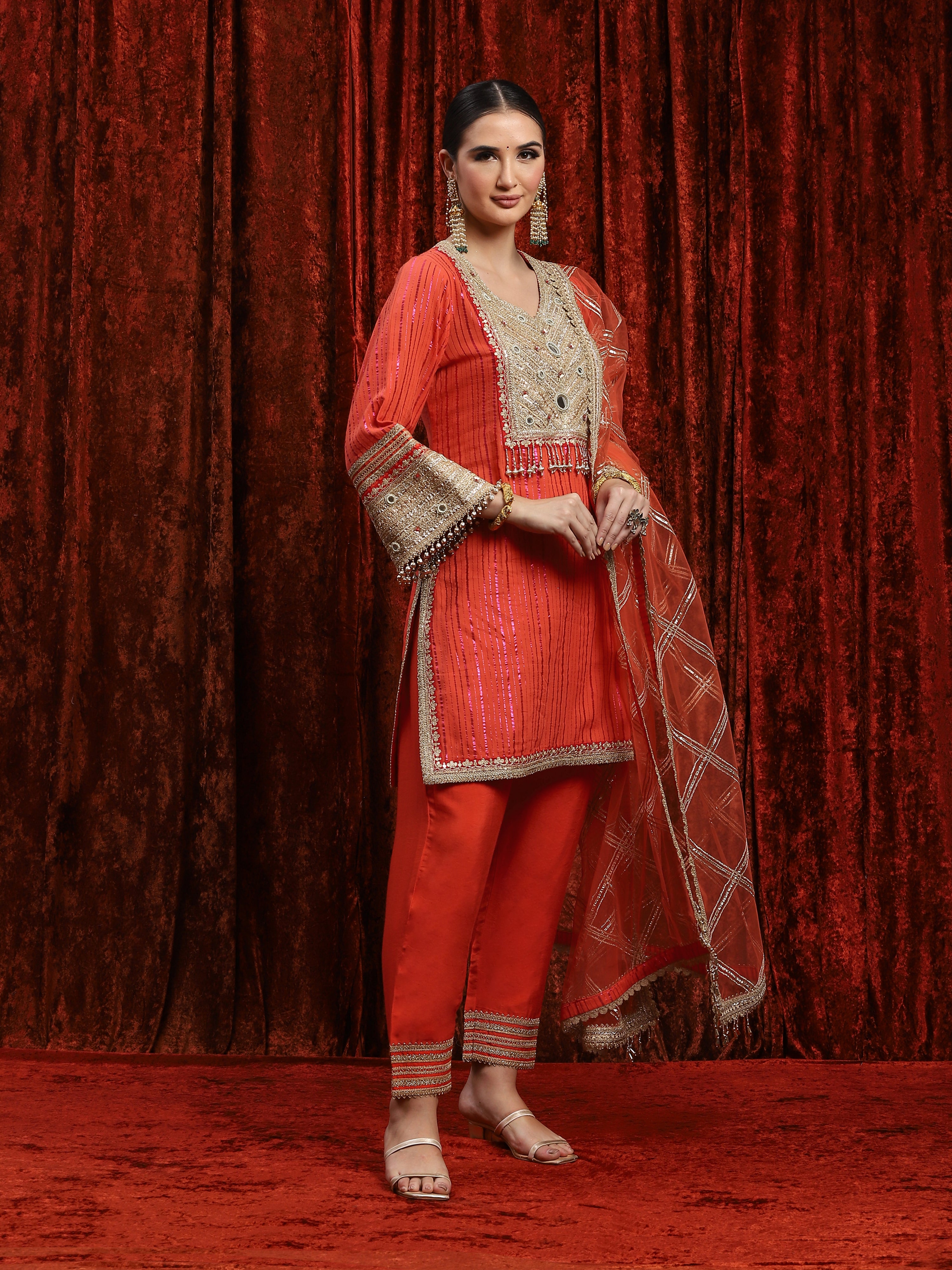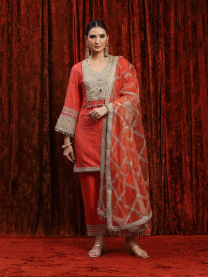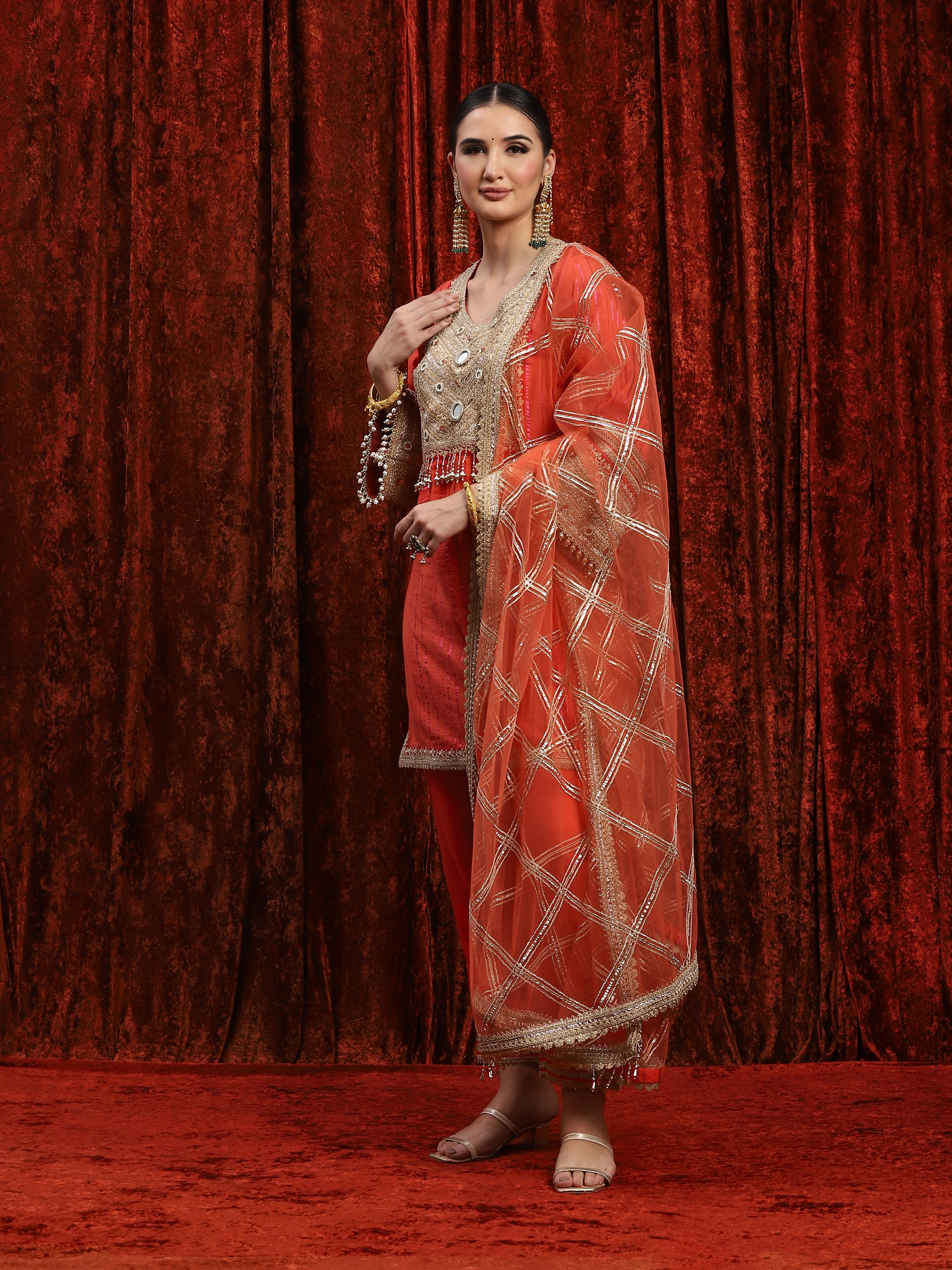Orange & Red Kurta Kurta Pant Dupatta Set