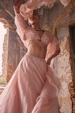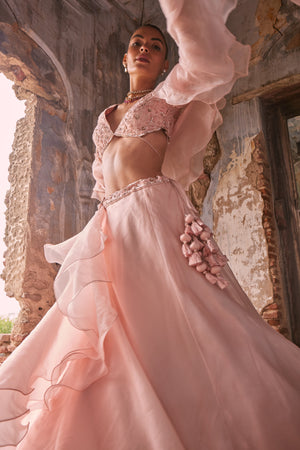 Fabric : Blouse - dupion silk ; lehenga & dupatta - organza