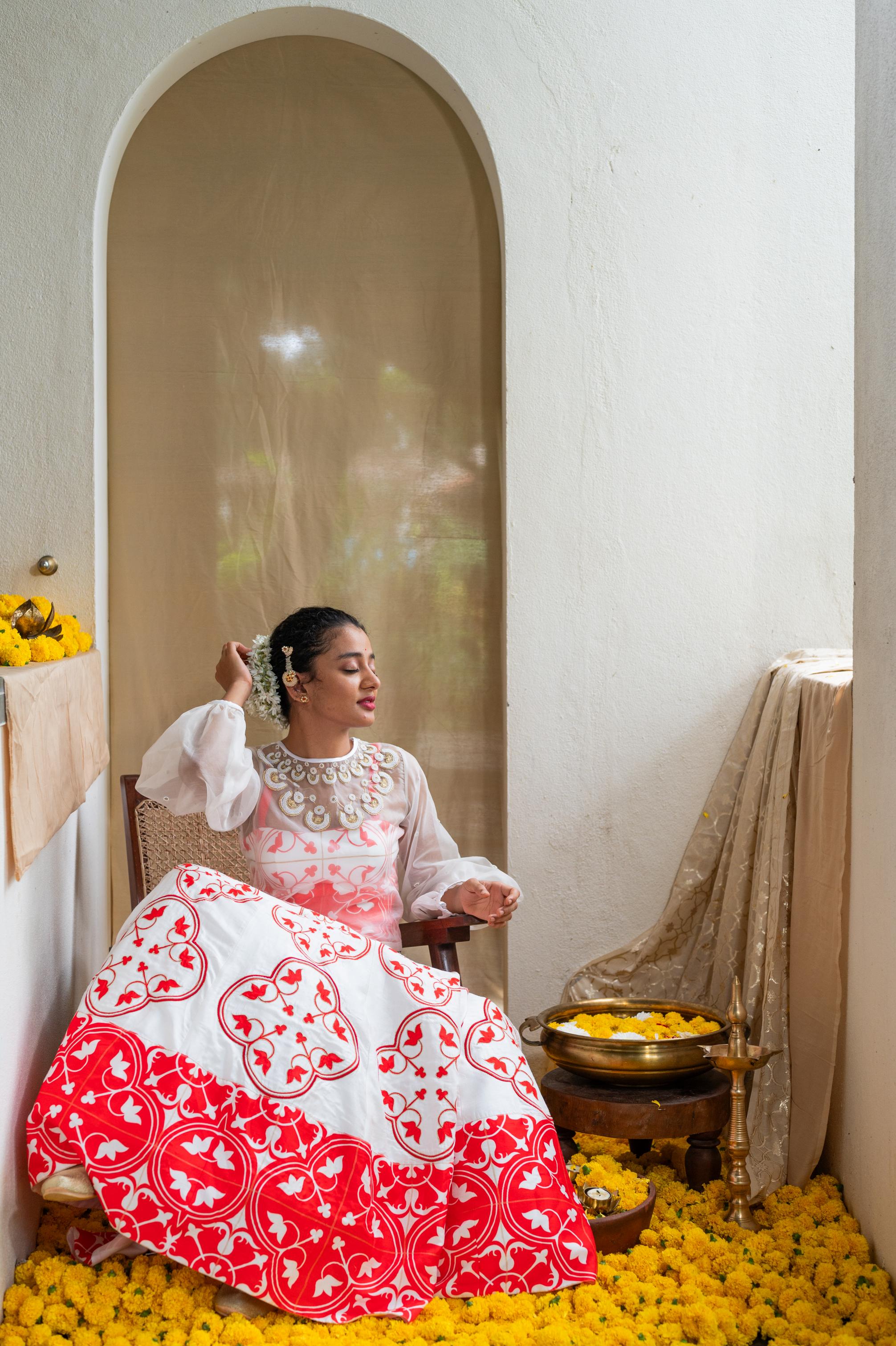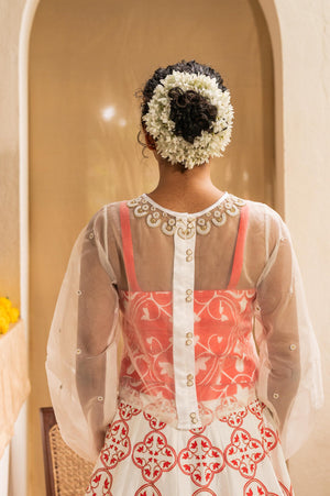 LEHENGA WITH POCKETS, PRODUCT WITH LINING / MACHINE EMBROIDERY, WITH PEARL DETAILING