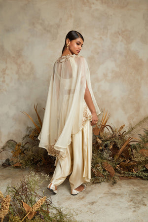 Organza Umbrella Cape With Silk Bustier And Cotton Satin Pants