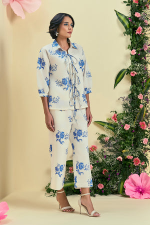Breezy and refined, this Co-ord Set features a regular fit silhouette with all-over embroidery and front drawstrings for a smart, contemporary look. Comes with a comfortable inner slip for added ease. Paired with fully embroidered straight pants featuring a utility pocket, it’s the perfect pick for effortless summer elegance.