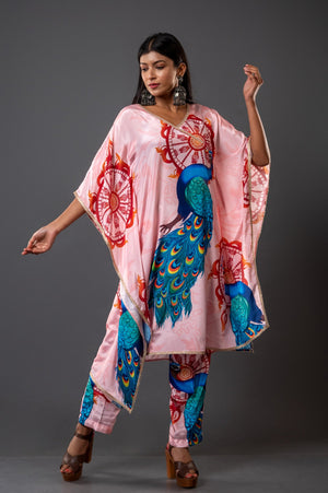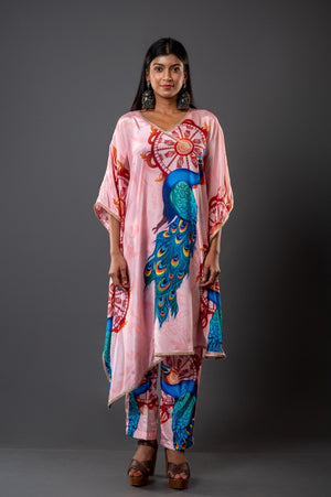 This asymmetrical oversized Indo-western kaftan set embodies calmness and elegance. Symbol of inclusivity, versatile in styling.