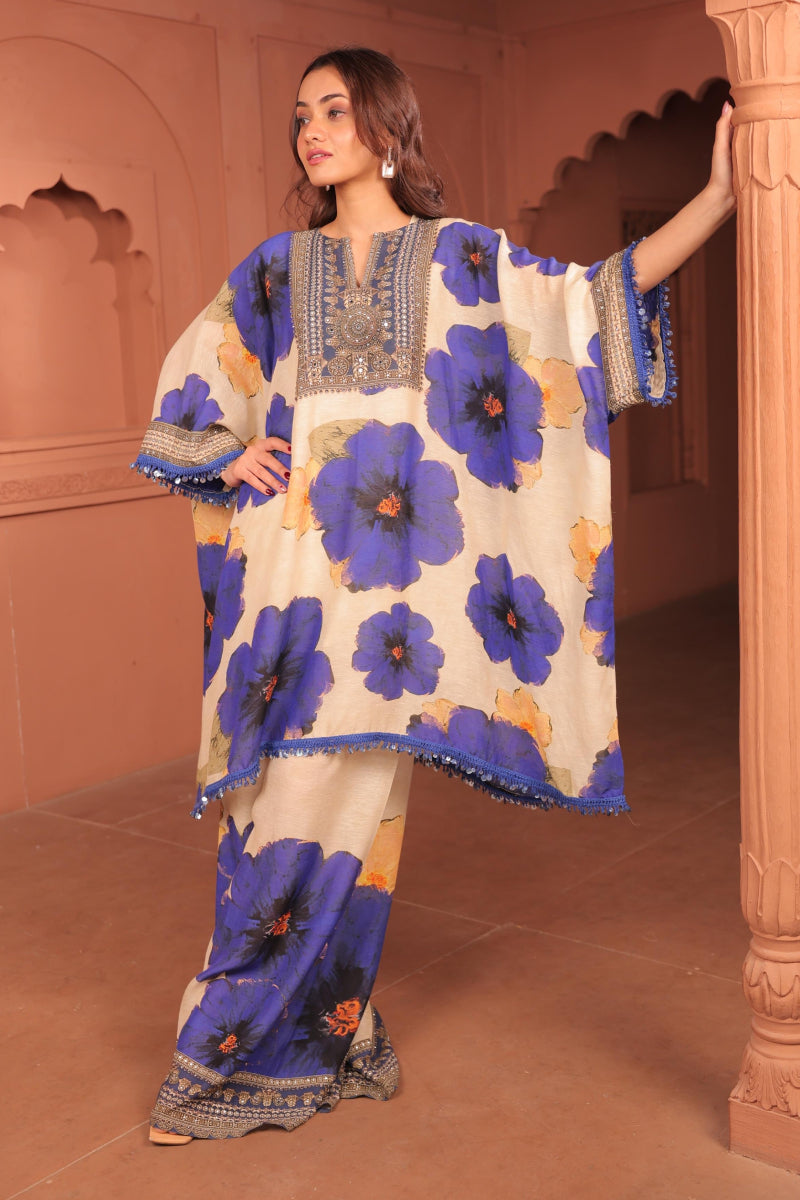 Inspired by delicate flower petals, this Pankhudi kaftan set is a