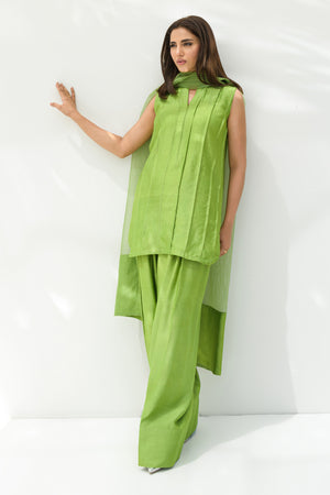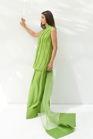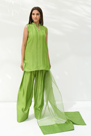 Parrot Green solid farshi salwar set with a flowy silouette and timeless elegance.