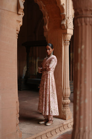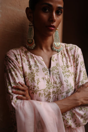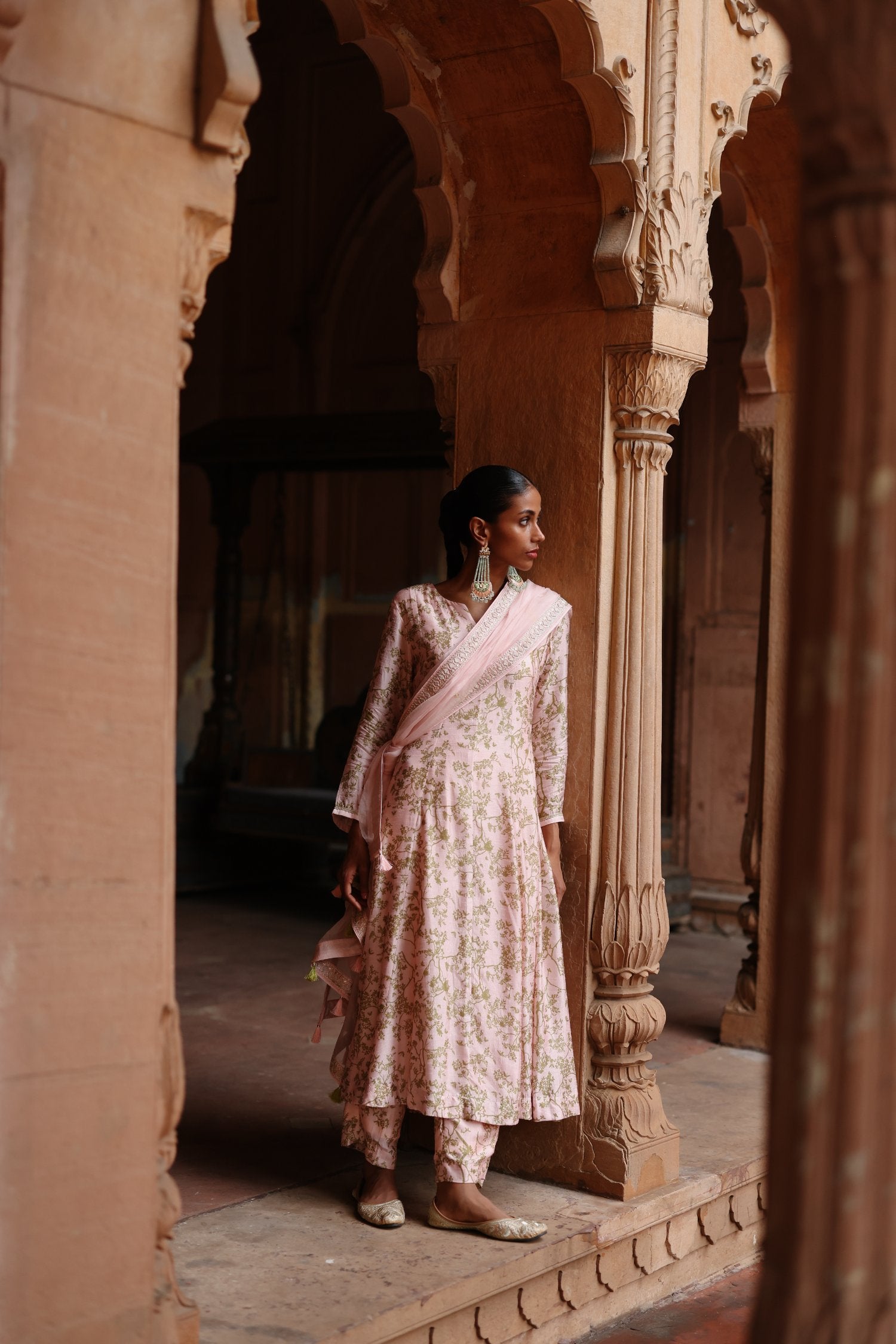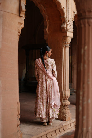 Pastel Pink Dupion Silk Printed Anarkali Set