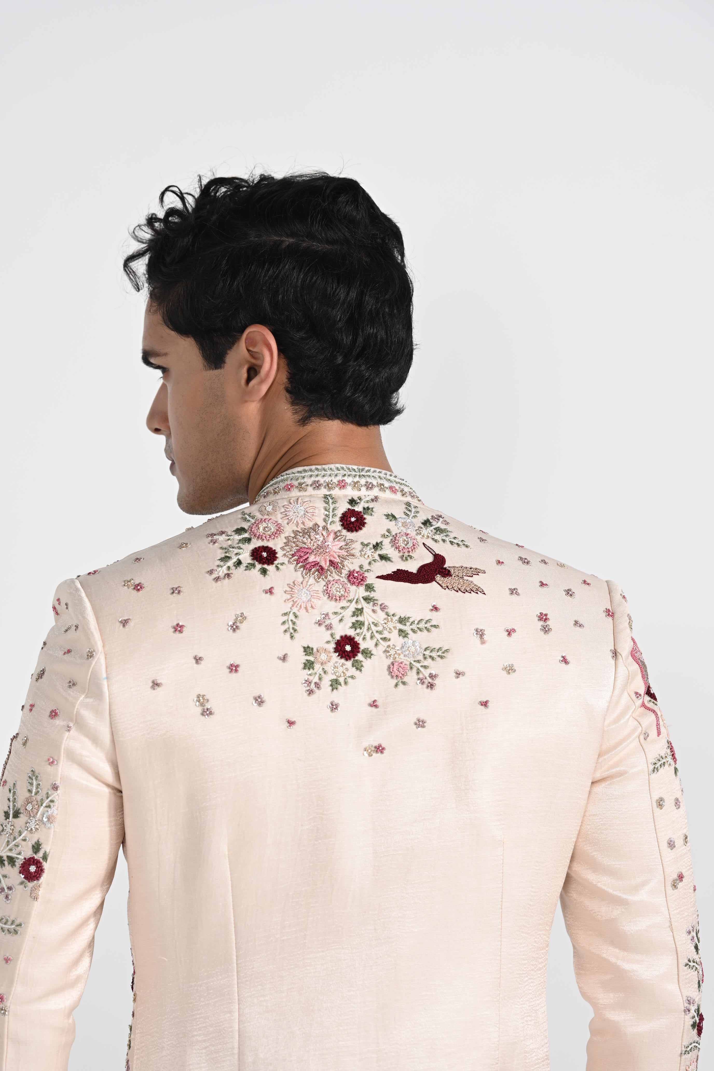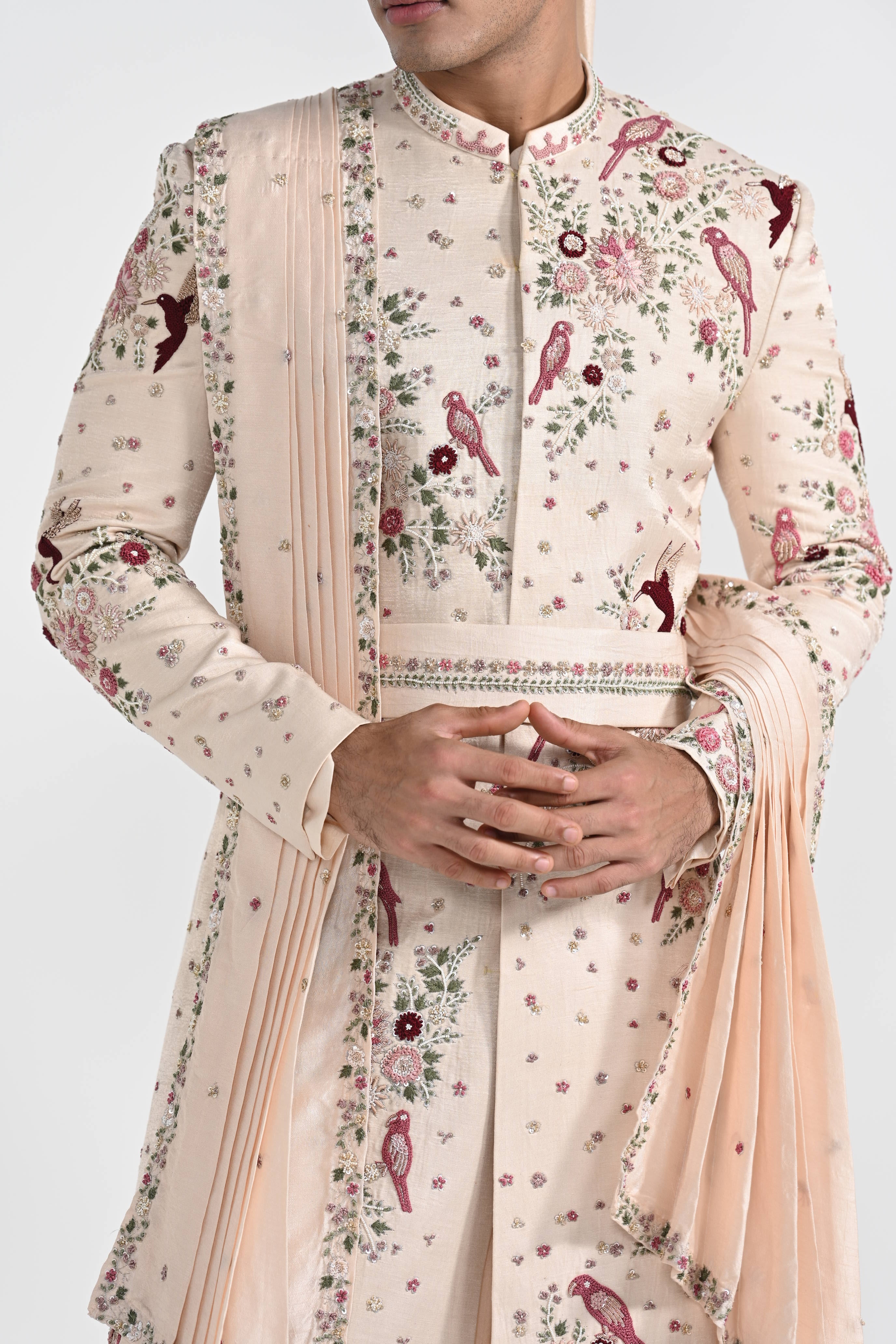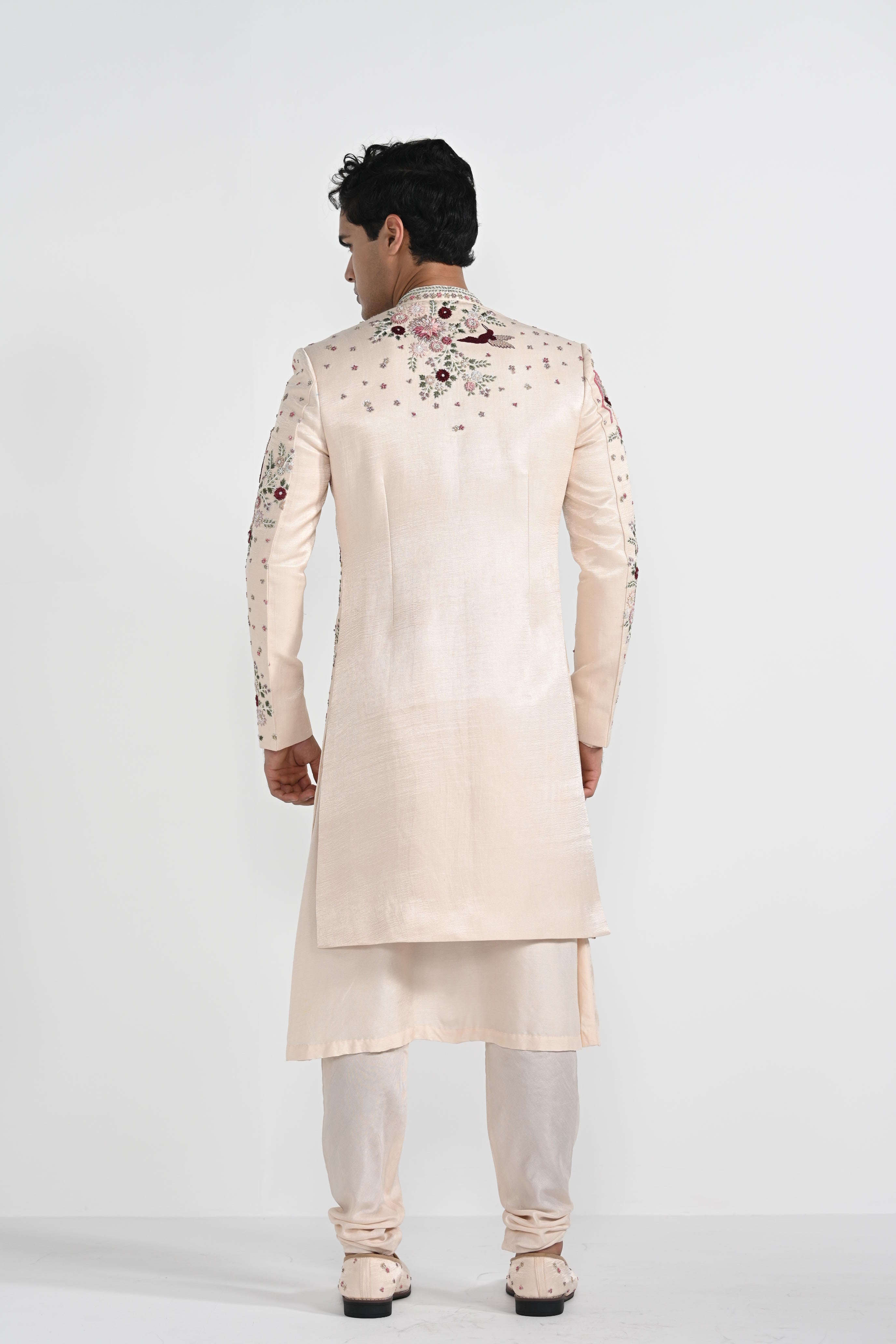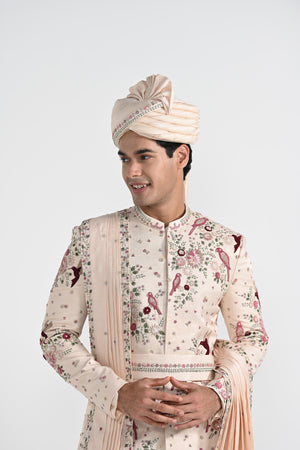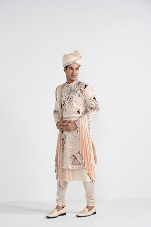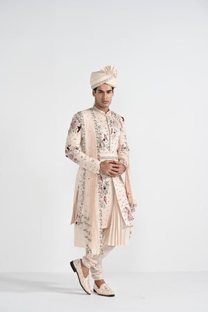 Pastel Pink Floral Work Sherwani Set
