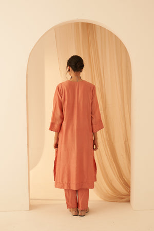 Peach Chanderi Floral Embroidered Kurta Set