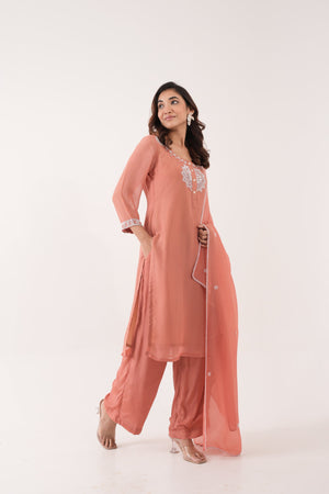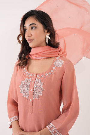 Peach Crystal Kurta Set