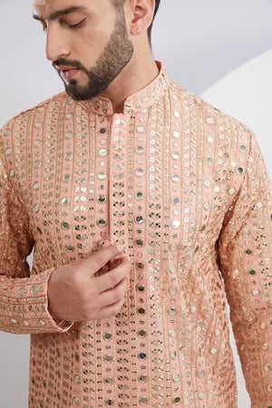 Peach Mirrorwork Kurta