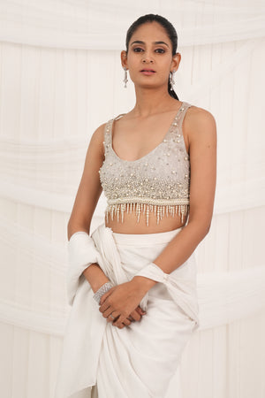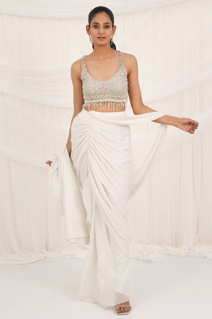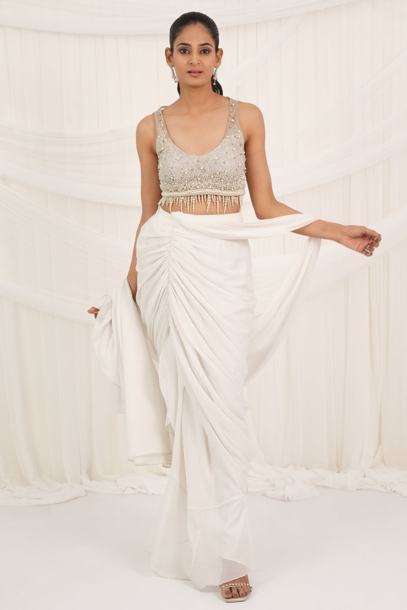 Pearl Cream Draped Saree