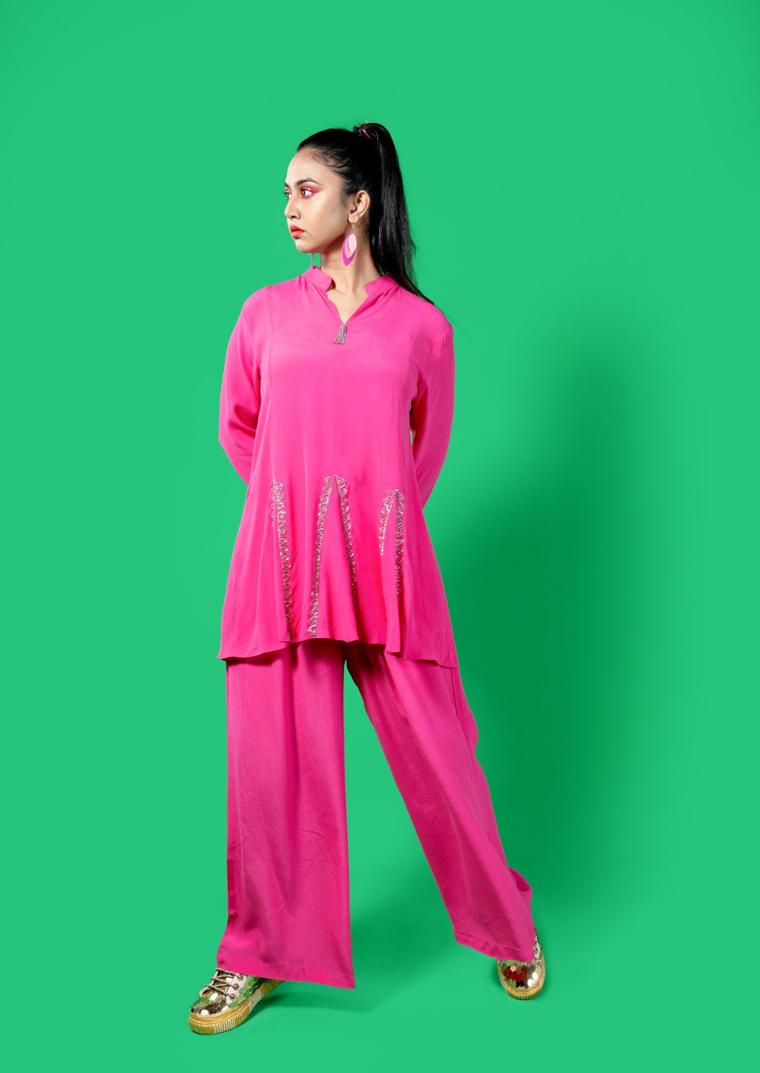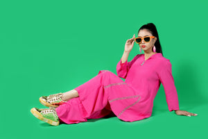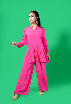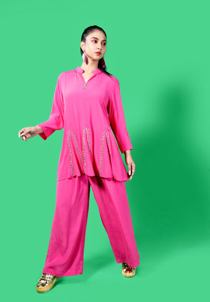 Panels Top With Cutdana Work And Full Elastic Flare Pants