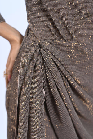 The Phyllis Party dress is perfect for any special occasion. With brown sequins and a side drape, this short dress sparkles and shines. The bell sleeves offer a delicate balance that transforms this dress into an elegant look.