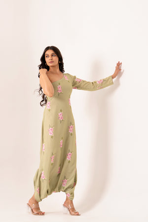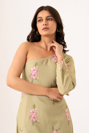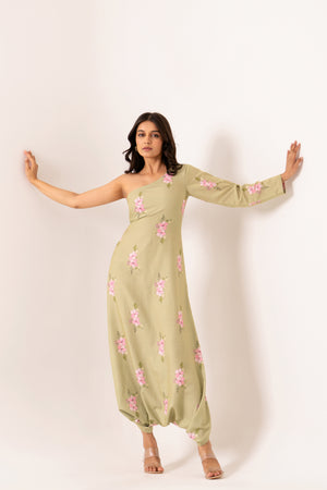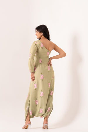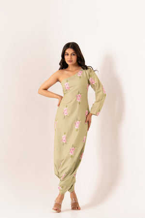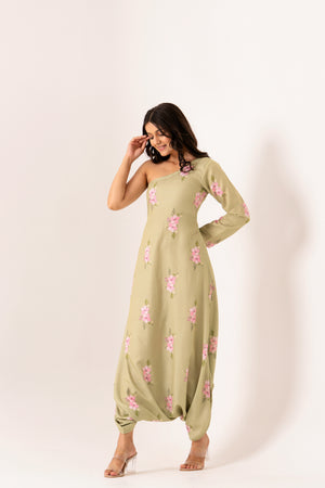 Pickle Green One-Shoulder Dhoti Jumpsuit