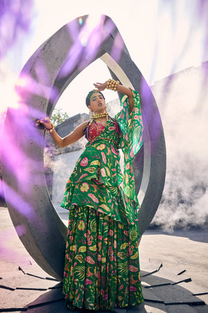 Looking for an outfit that will leave everyone in awe of your fashion sense? Our Avocado Green Ruffle Style Saree in Printed Georgette is just what you need! Designed with a blend of comfort, style, and elegance, this saree will be the envy of all. The printed georgette fabric is soft to the touch and stays crease-free. Don't forget the ruffled borders that add a charming flair to your outfit.