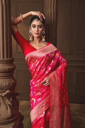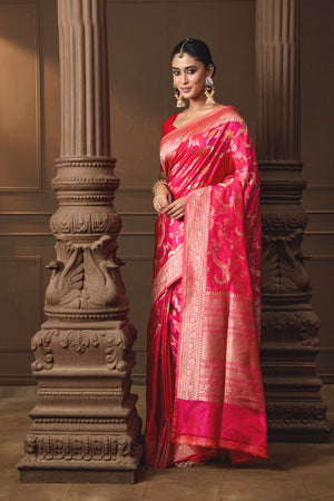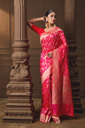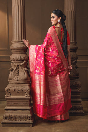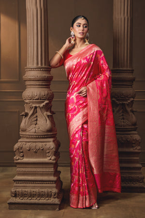 Pink Banarsi Silk Multicoloured Jaal Saree