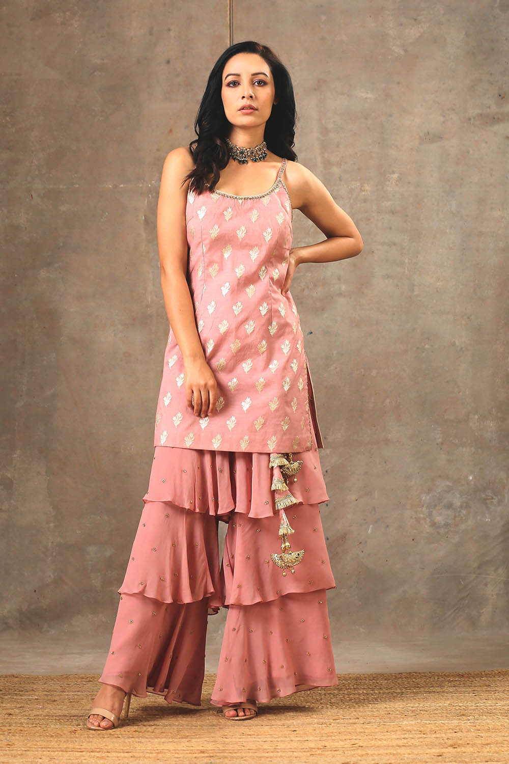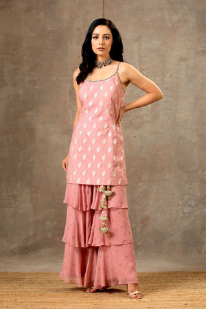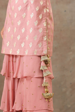 Pink Color Banarsi Embroidered Layered Sharara Set