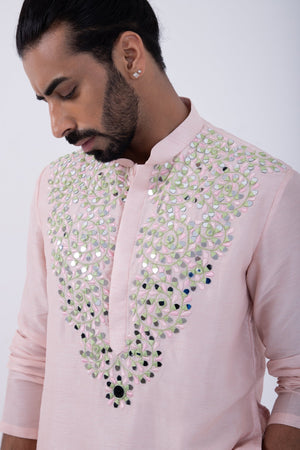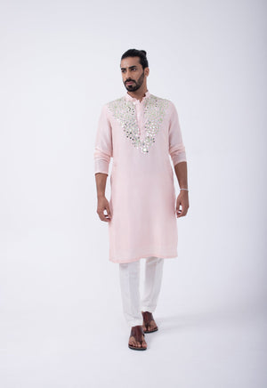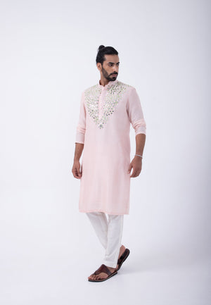 Bestseller cluster in pastels mirror thread embriodered kurta comes with a well fitted pant pyjama. Kurta length - 44". **The color may slightly vary due to screen lightning.