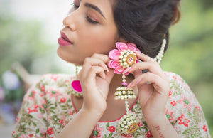Pink Floral Jhumka With Earchain