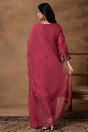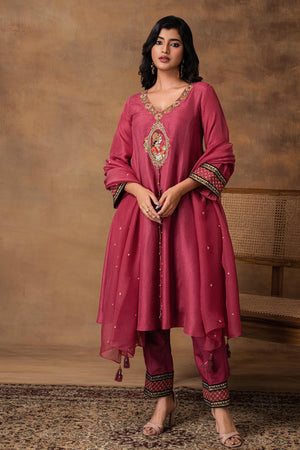 Pink Silk Embroidered Kurta Set