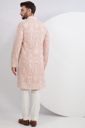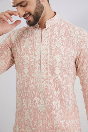 Pink Threadwork Kurta with Intricate Embroidered Neckline