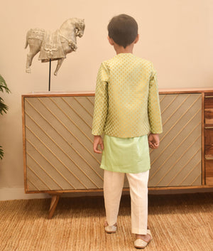 Pista Green Brocade Jacket with Kurta and Pant