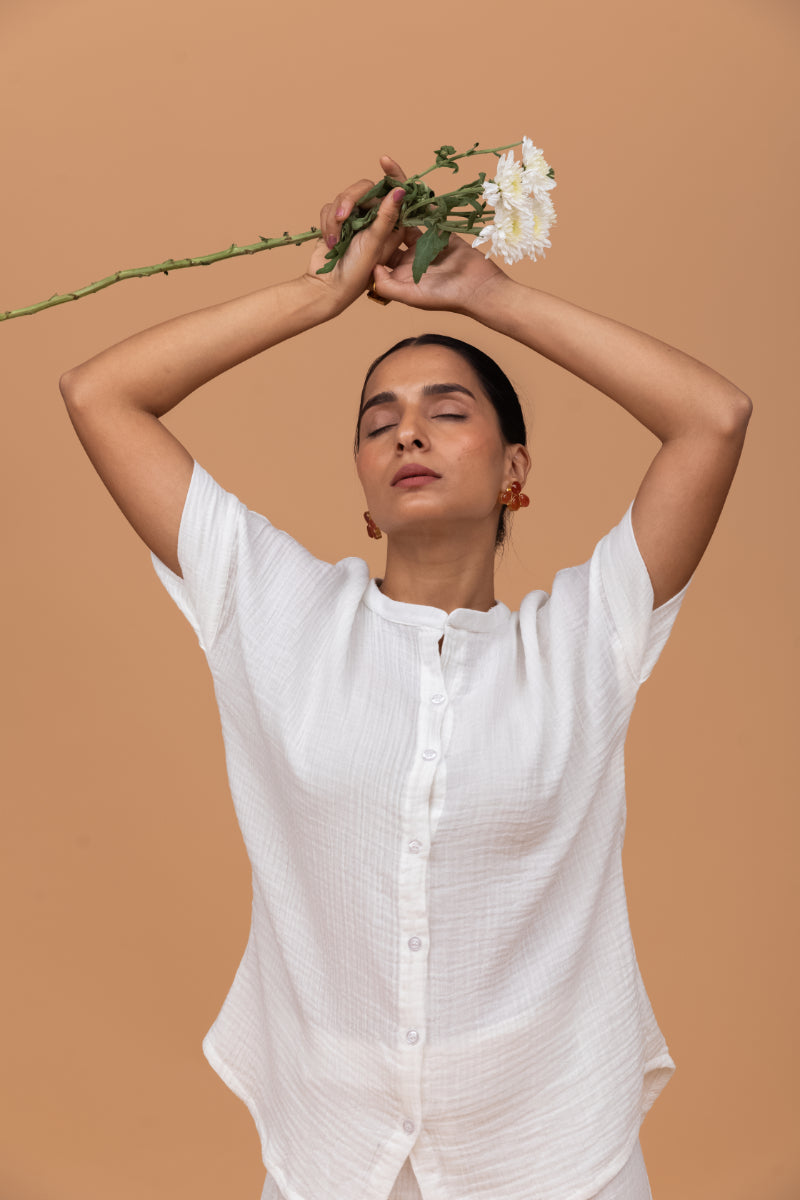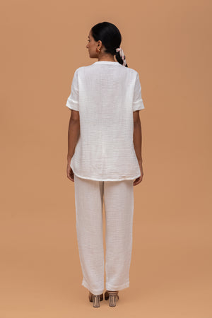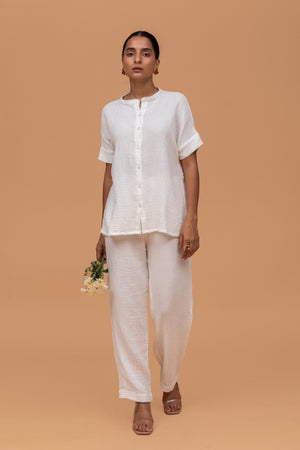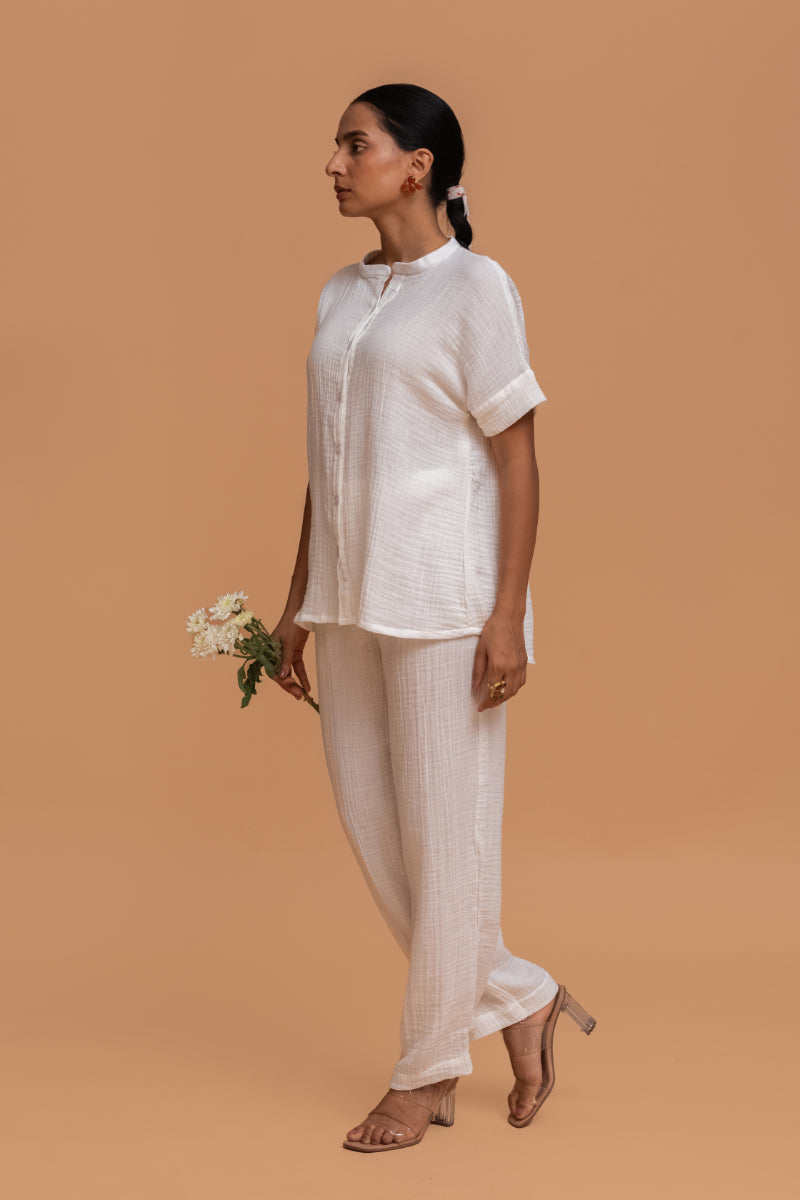 Plain White Gots Certified Wrinkle Cotton Co-ord Set
