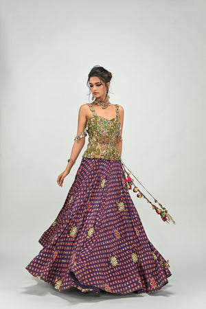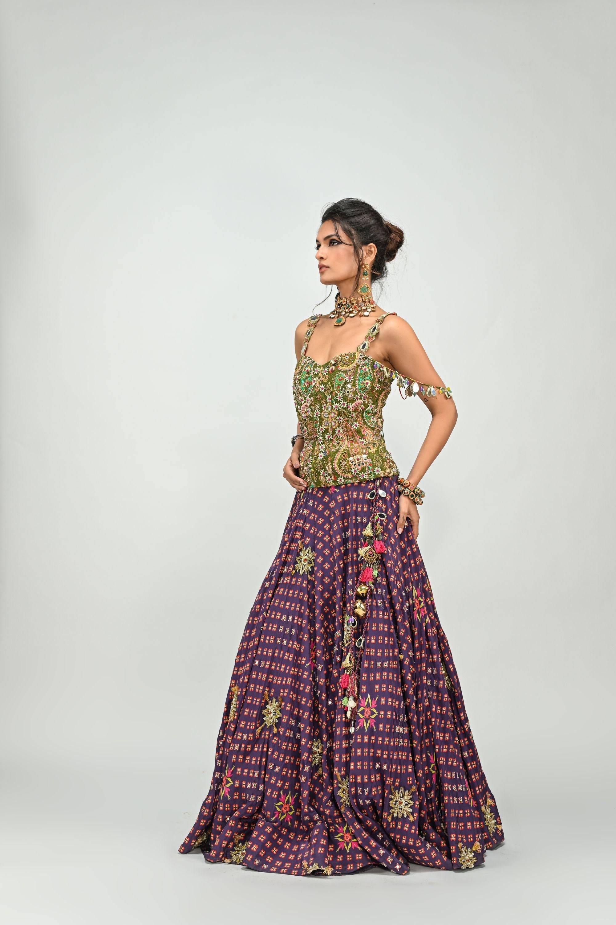 Plum Highlighted Lehenga Paired With Plum Badla Corset