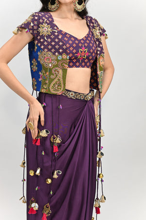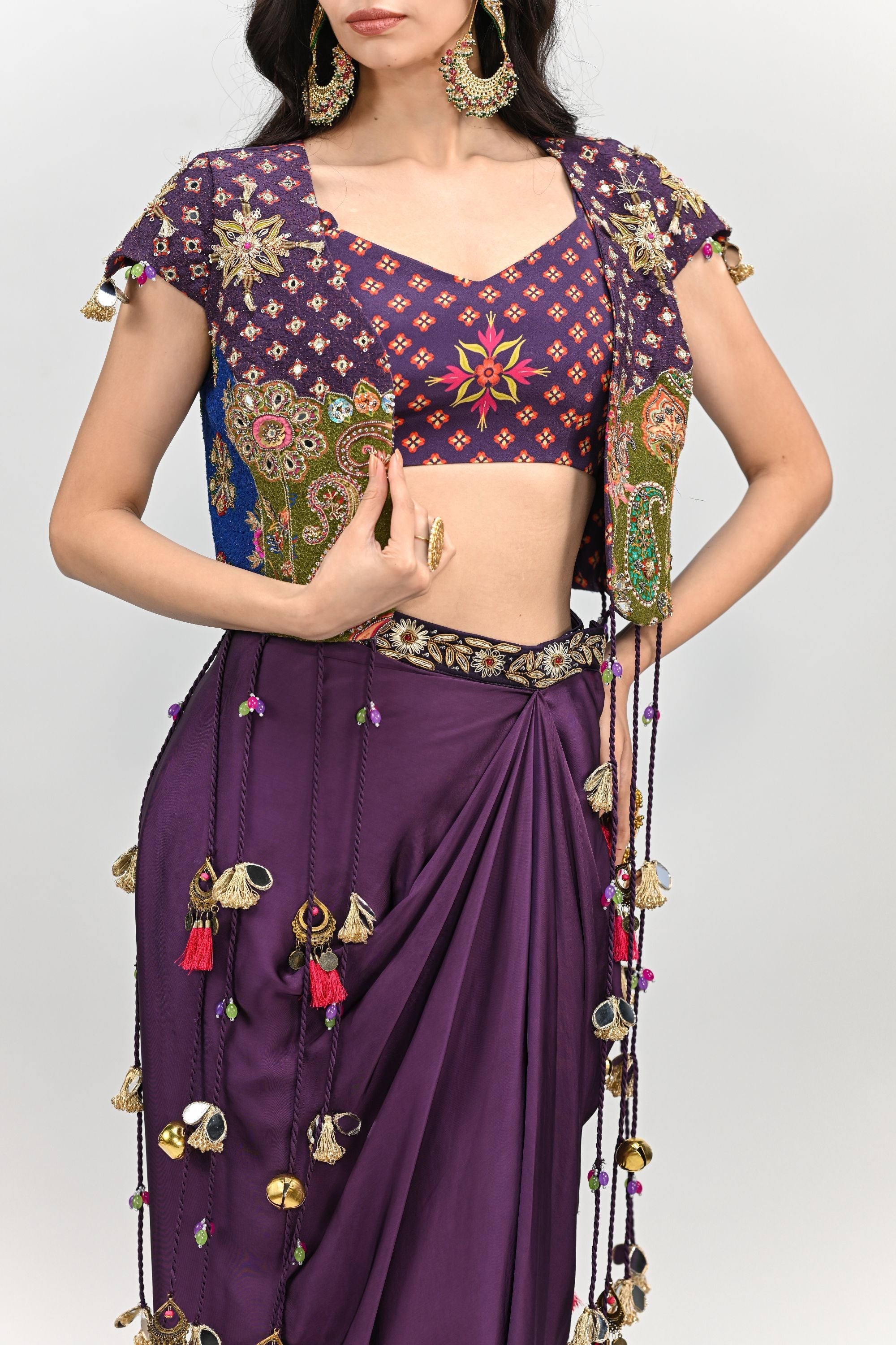 Plum Patch Highlighted Tassel Jacket Dhoti Skirt Set
