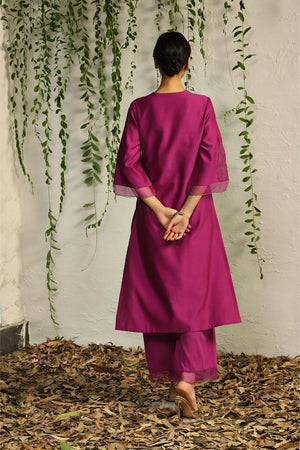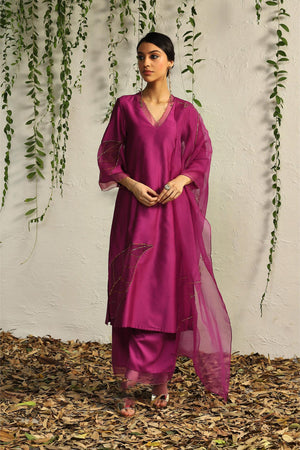 Pop pink chanderi straight kurta set- Set of 3