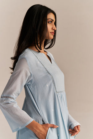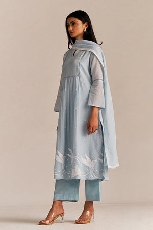 Powder Blue Mul-Mul Embroidered Kurta Set
