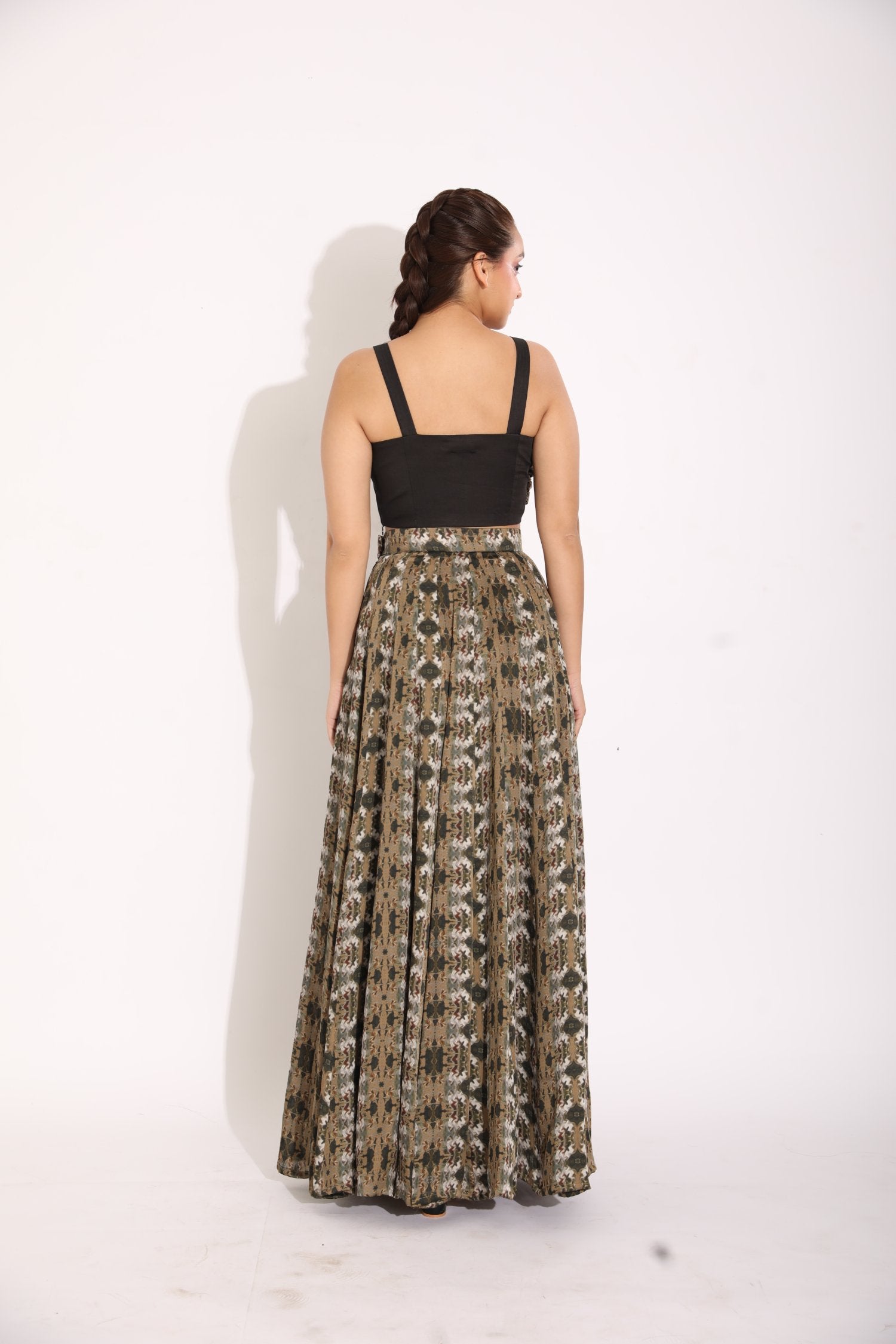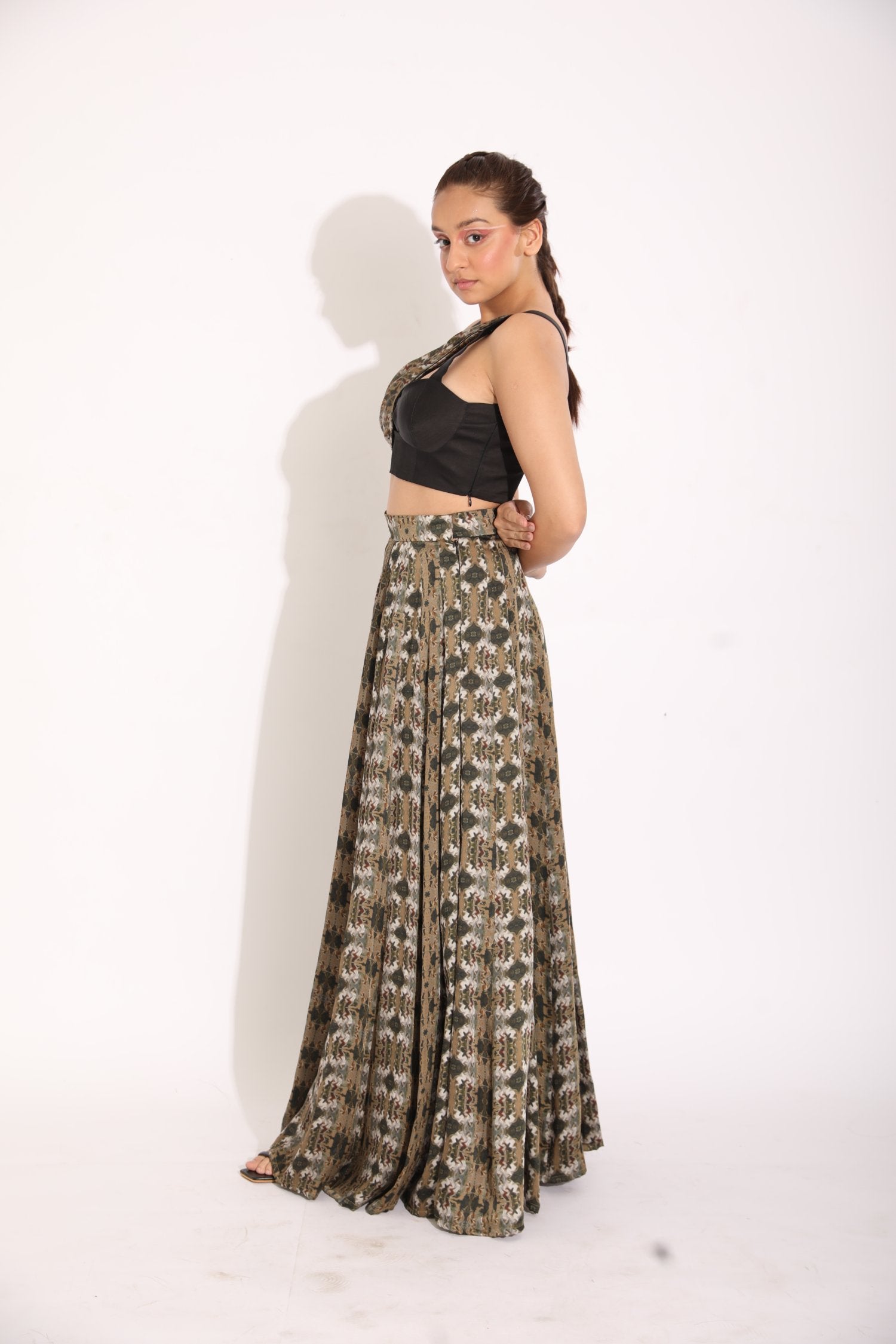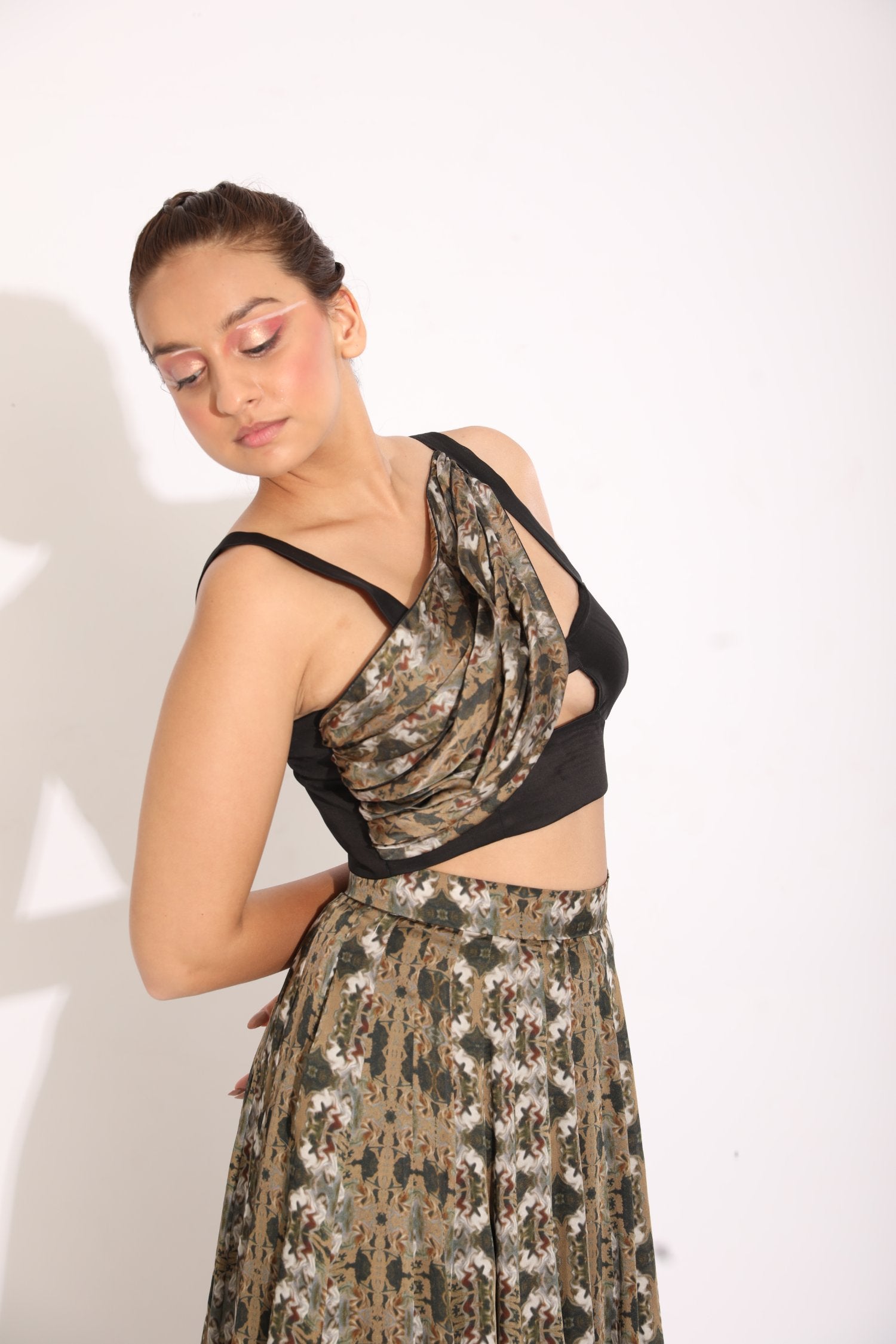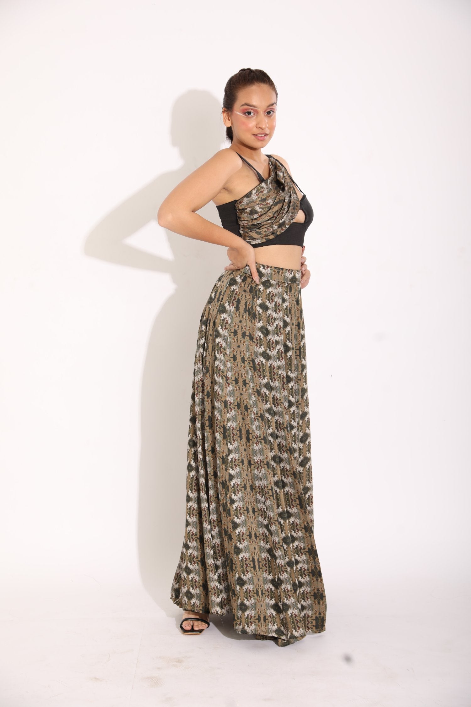 Printed Drape Blouse With A Kalidar Skirt