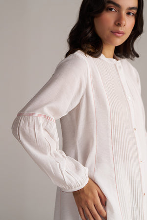and pant both, front open shirt has pin-tuck