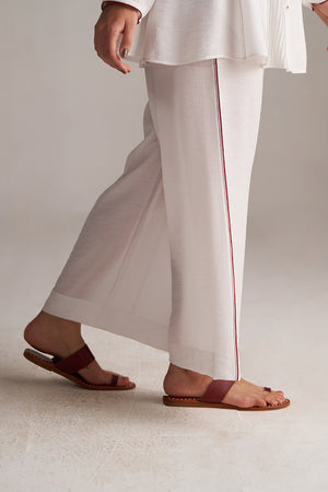 with wide leg bottom with maroon piping