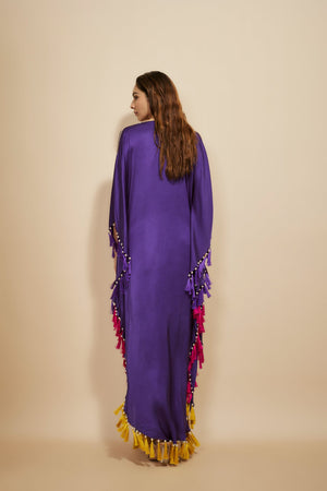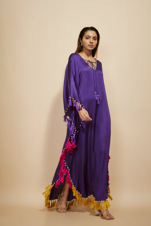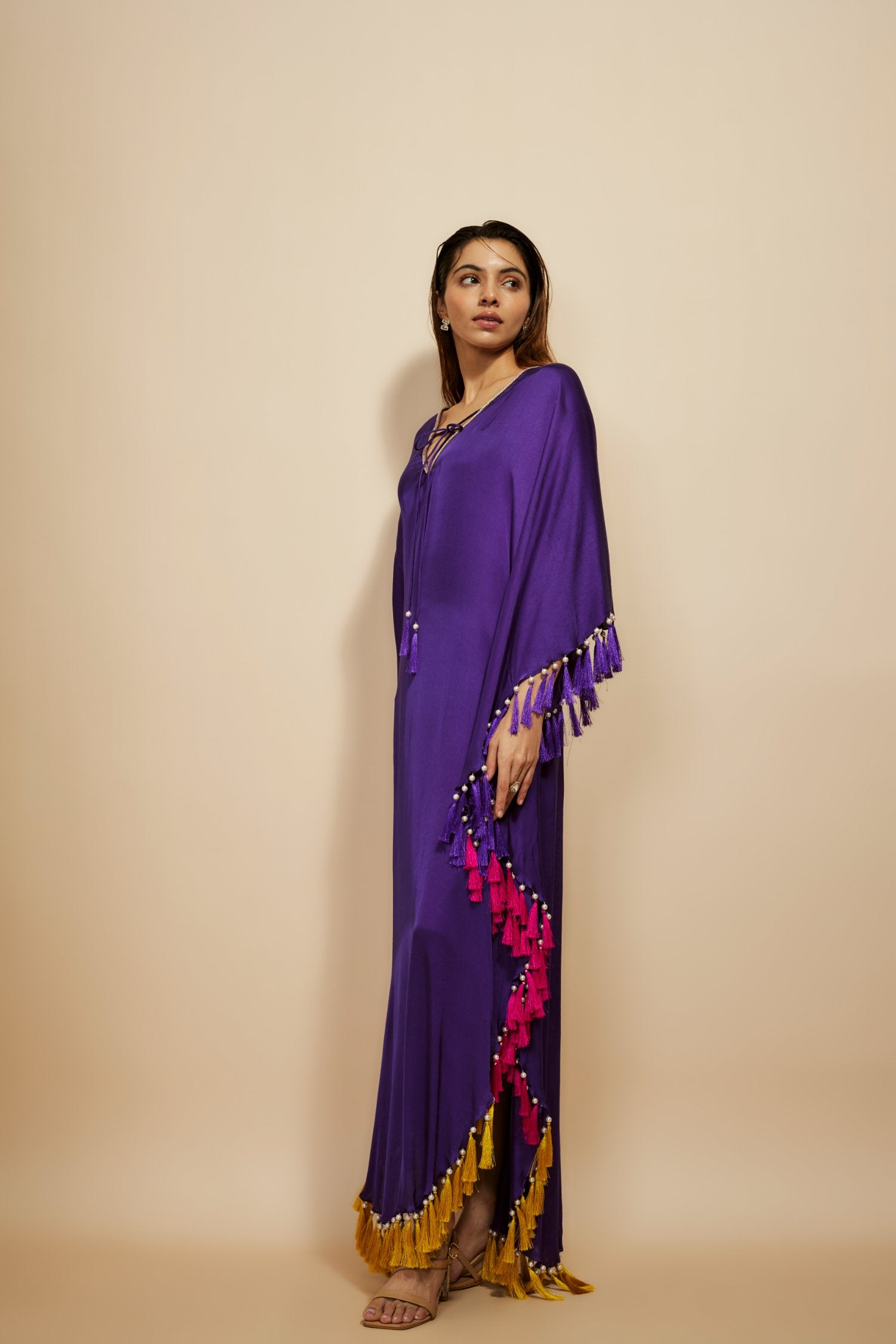Featuring Purple Embroidered Kaftan In Modal Satin