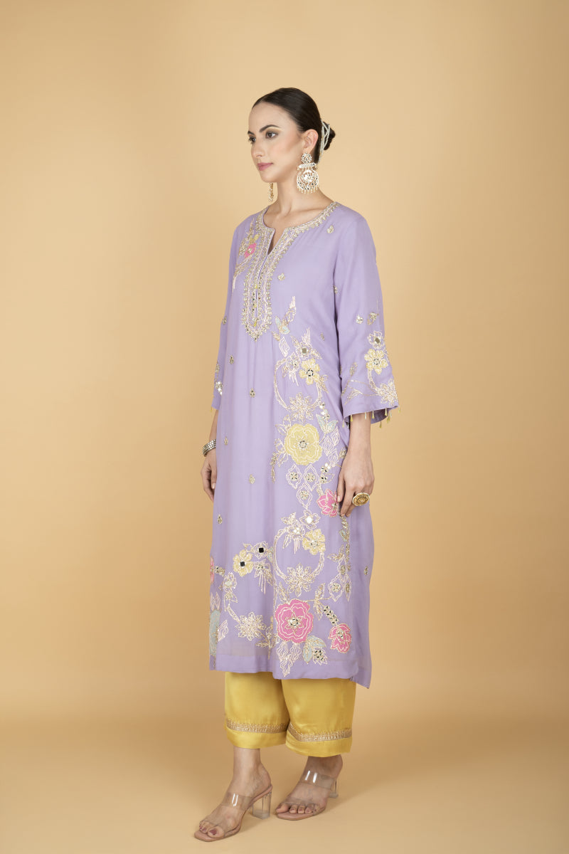 Purple Embroidered Kurta W/Contrasting Pant & Shaded Dupatta